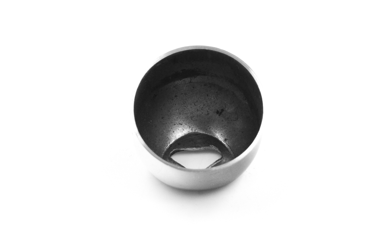 Наконечник штампованный (СПС) косой 30° на трубу Ø25 мм, для поручня Ø38.1 мм, полированный, нержавеющий, AISI 304, 400 Grit, k072-2