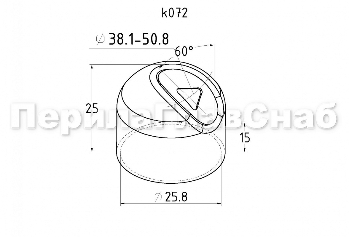 Наконечник штампованный (СПС) прямой 90° на трубу Ø25 мм, для поручня Ø38.1 мм, полированный, нержавеющий, AISI 304, k071 купить в Ростове-на-Дону