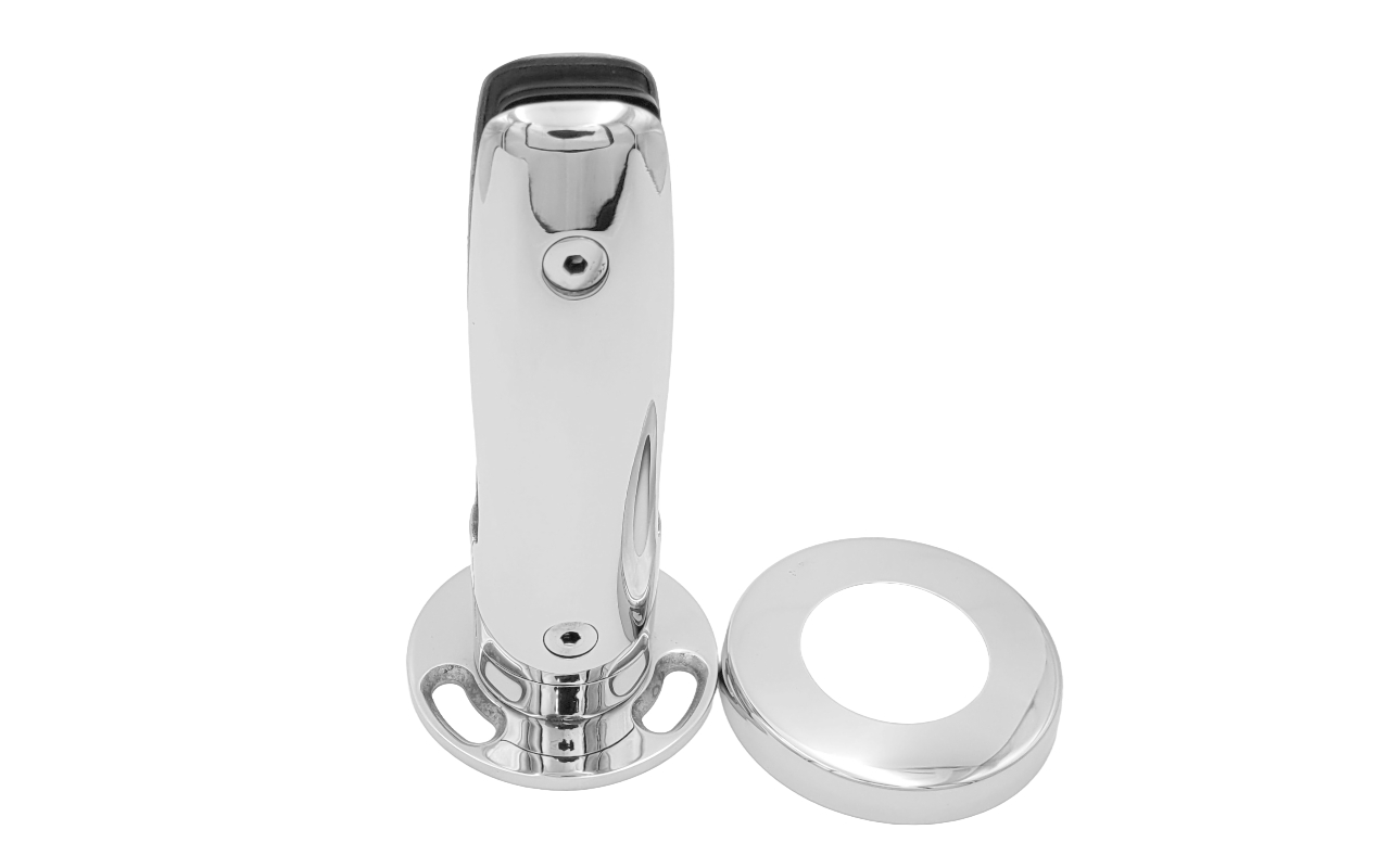 Стеклодержатель литой напольный, круглый, для стекла 12-16 мм, полированный (AISI 304). Так же вам понадобиться для крепежа потайной винт под шестигранник k601-19-120.