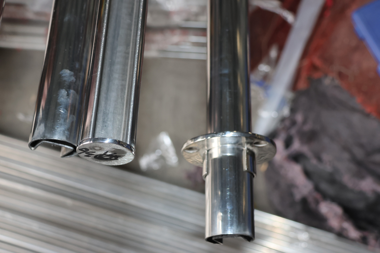 Труба Ø42.4 мм, с пазом 24х24 мм под стекло, тройная полировка 800GRIT, AISI 304