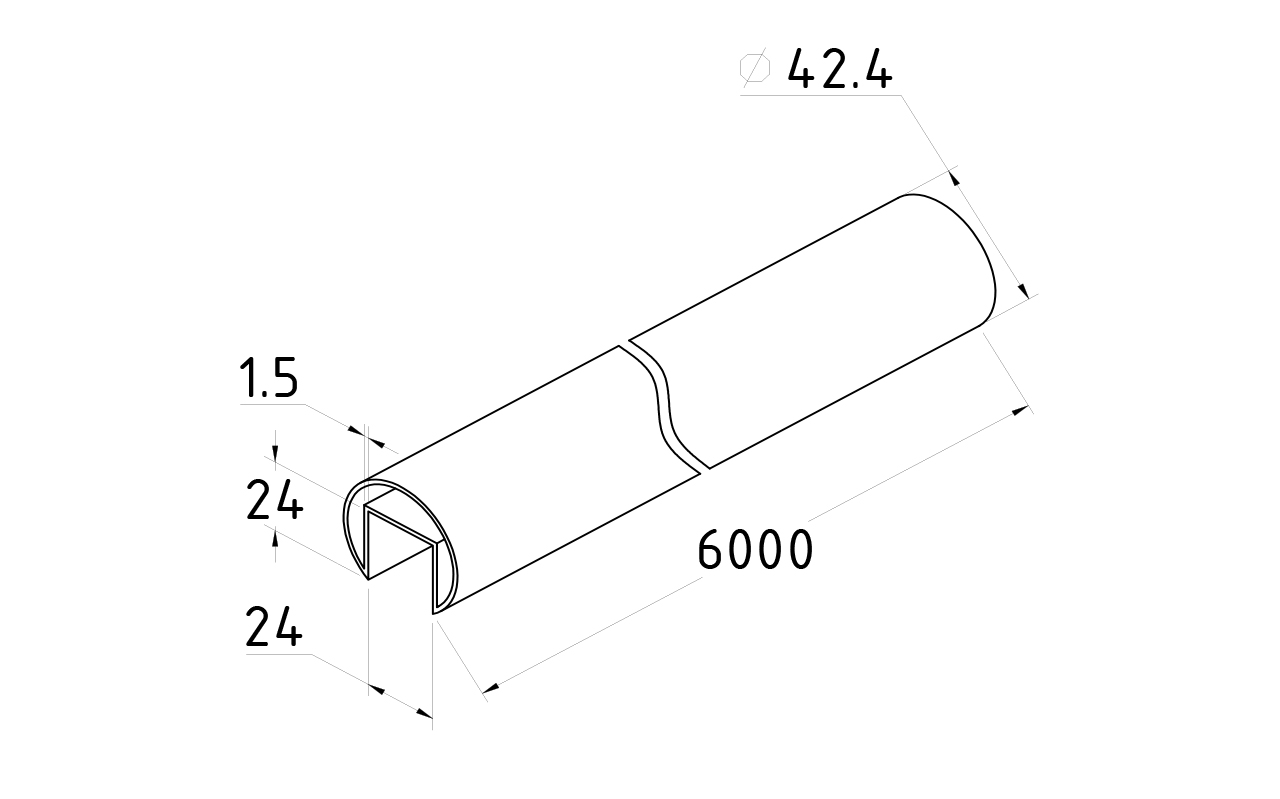 Труба Ø42.4, с пазом 24х24, под стекло, полированная, EURO (AISI 316L) k827