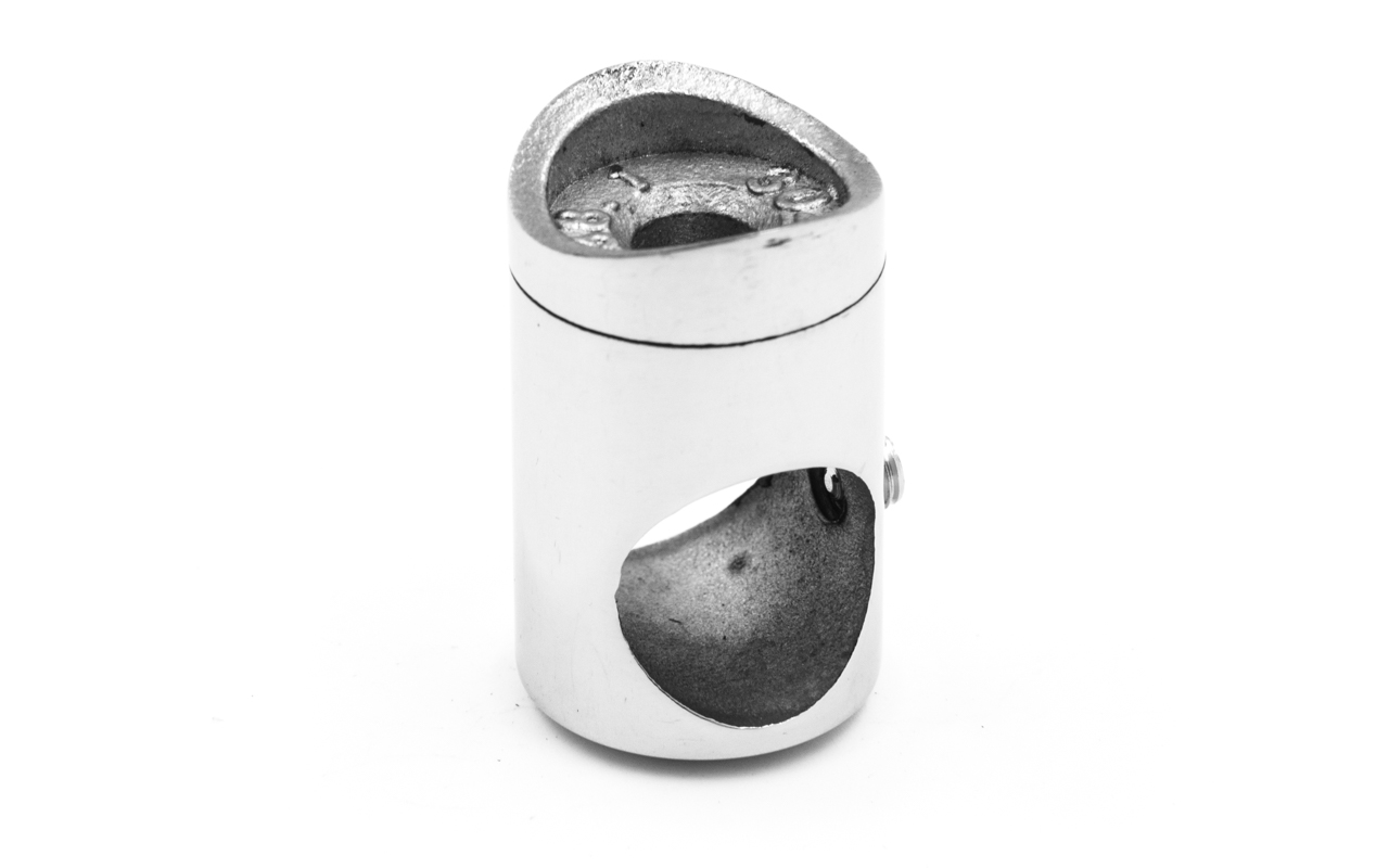 Наконечник палец с алюминиевой системой фиксации на стойке Ø38.1х1.5 мм, регулируемым ложементом под поручень Ø50.8 мм, полированный, литой, нержавеющий (AISI 304) k204 купить в Ростове-на-Дону