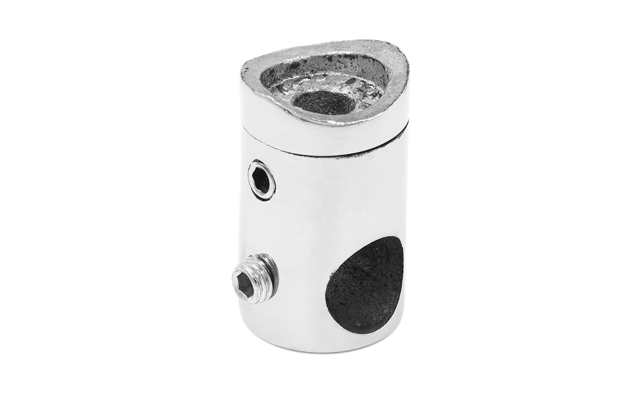 Ригеледержатель k082, разборный, под трубу Ø38.1 мм и ригель (леер) - 10 мм, ригель крепится сквозь отверстие 10.5 мм, шурупом под шестигранник. Деталь полированная, с изменяемым углом прокладки ригеля.