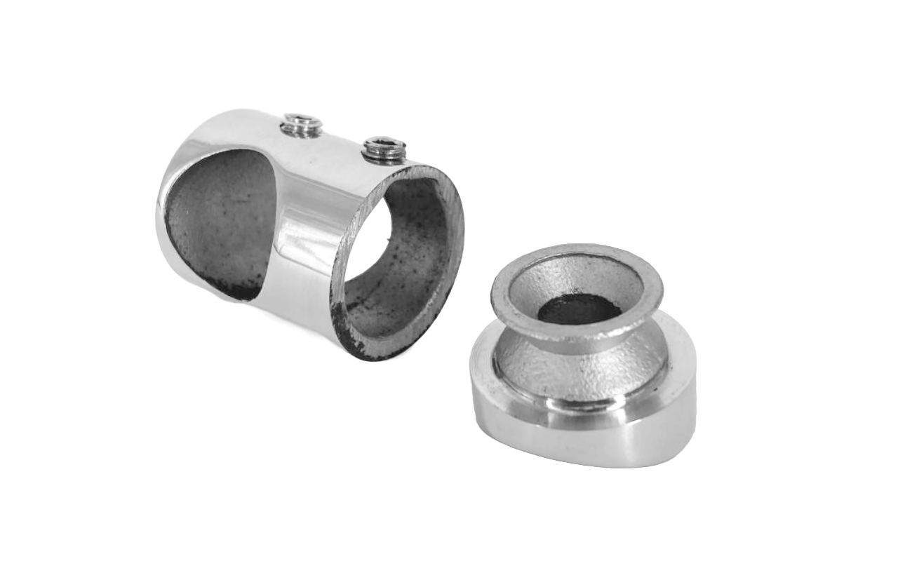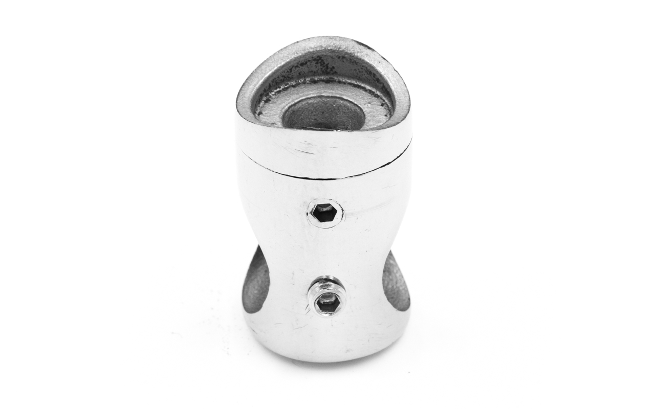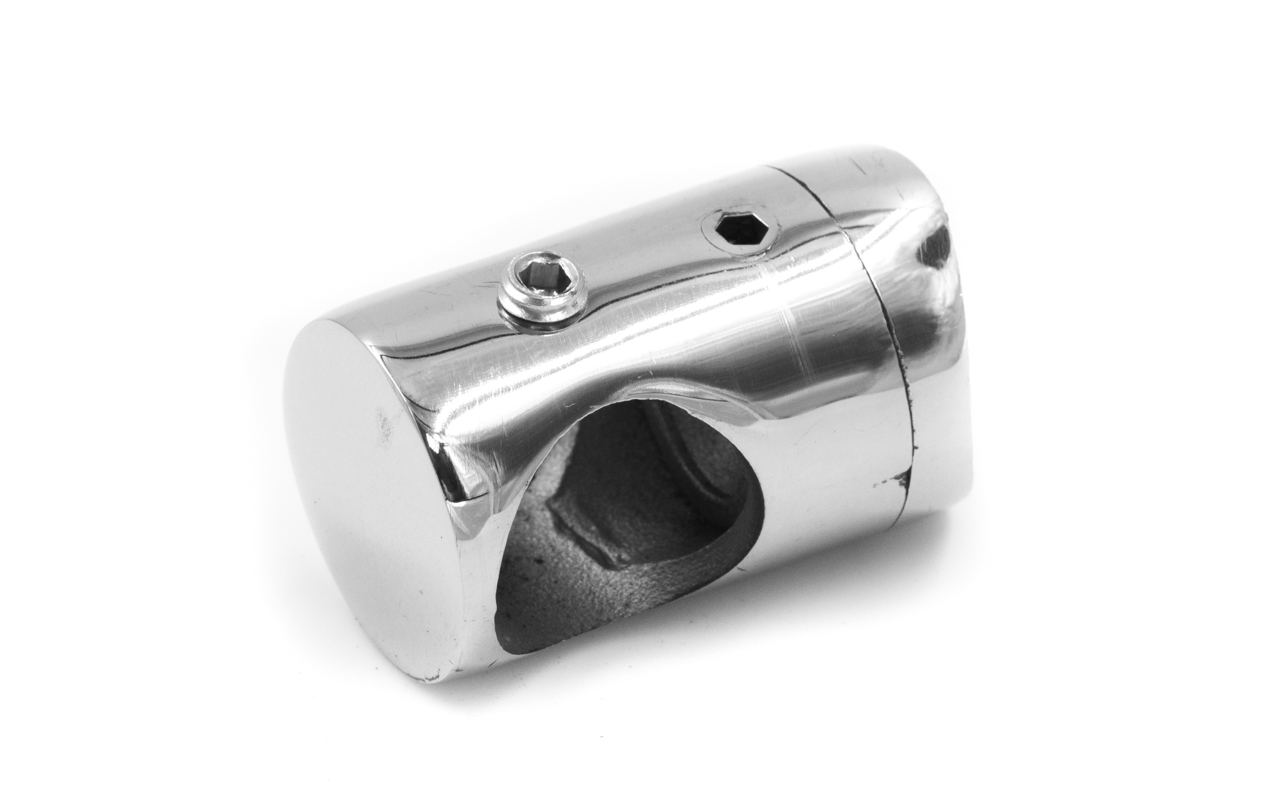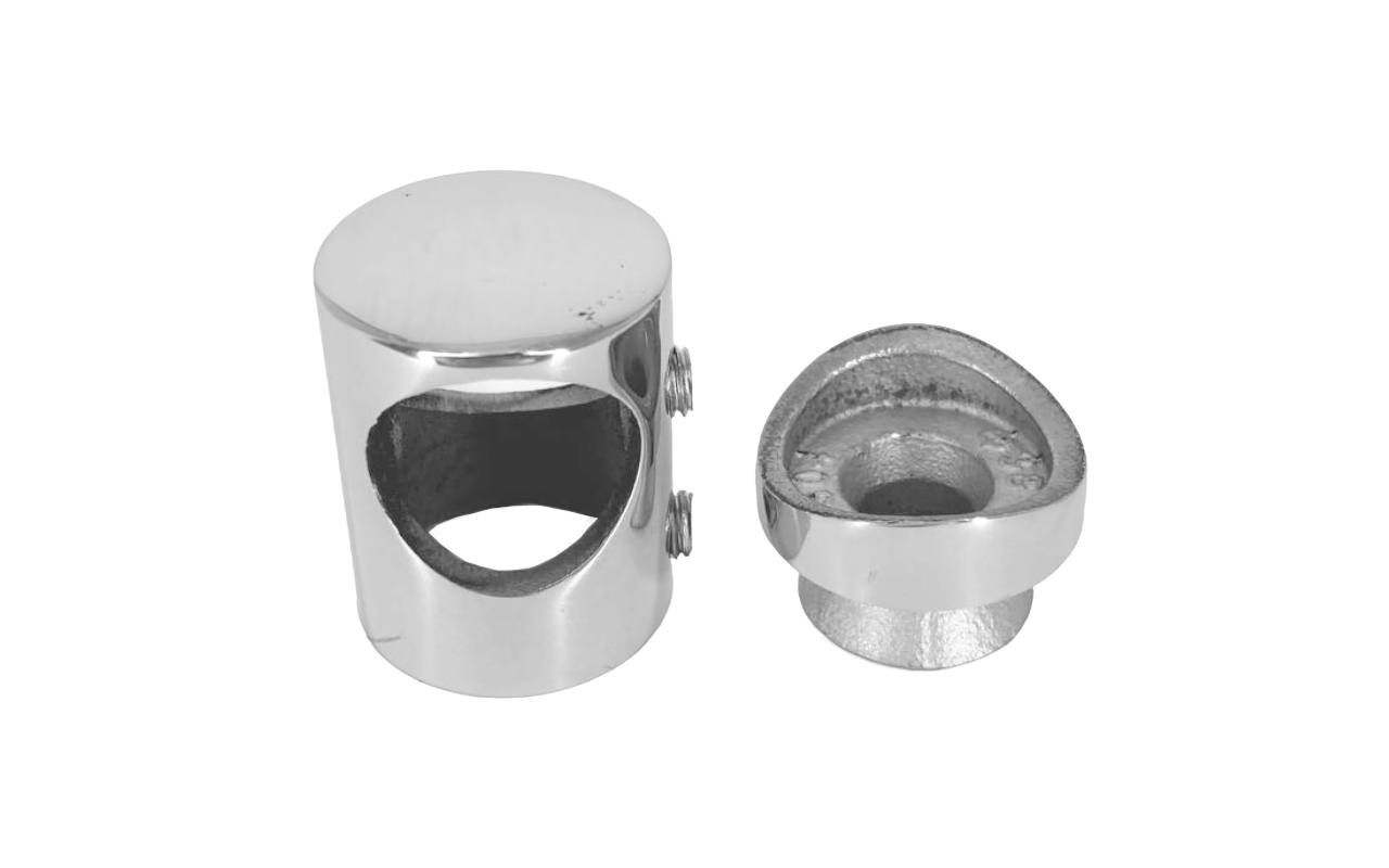 Наконечник палец с алюминиевой системой фиксации на стойке Ø38.1х1.5 мм, регулируемым ложементом под поручень Ø50.8 мм, полированный, литой, нержавеющий (AISI 304) k204 купить в Ростове-на-Дону