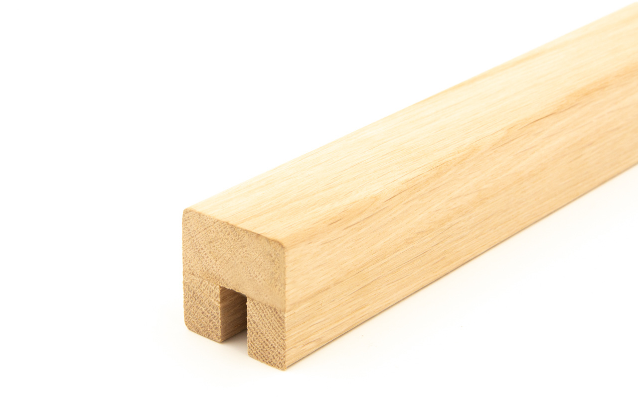 Поручень из древесины дуба 40х40мм с пазом под стекло