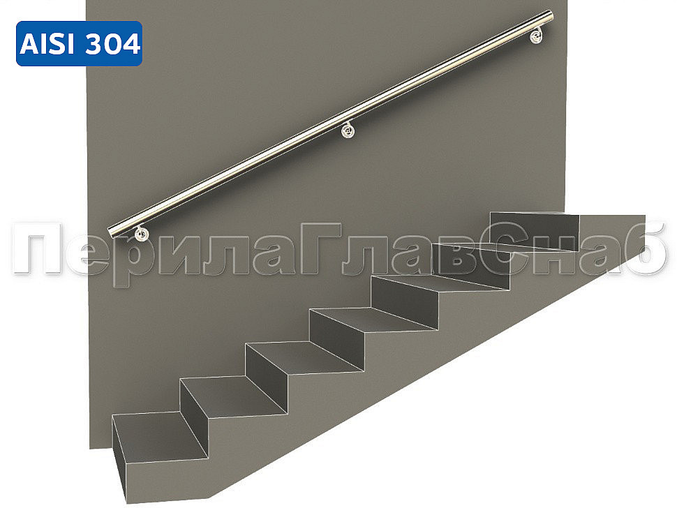 Готовый пристенный поручень с 4 держателями, длина 3300 мм (AISI 304) k730-33 купить в Ростове-на-Дону