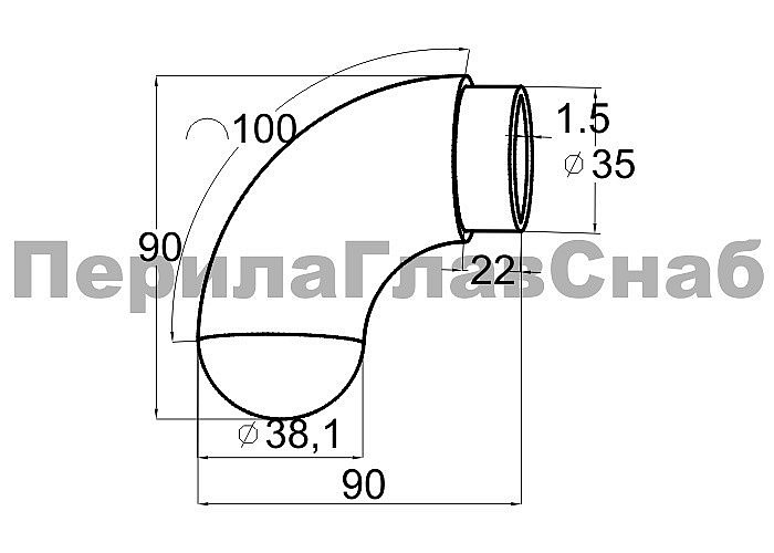 Отвод поручня под сварку Ø38.1х1.45 мм, 400 Grit, (AISI 304) k095 купить в Ростове-на-Дону