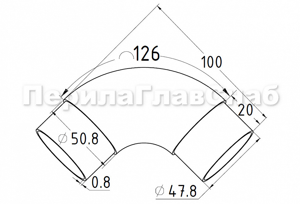 Отвод поручня с двумя установочными кольцами Ø50.8х125 AISI 304 k052-8