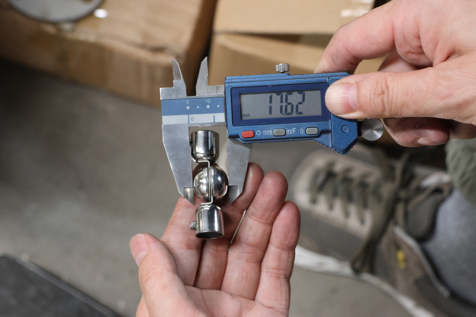 Поворот ригеля Ø12 мм, регулируемый, шаровый, внешний. Деталь полированная, штампованная. Марка стали - AISI 304