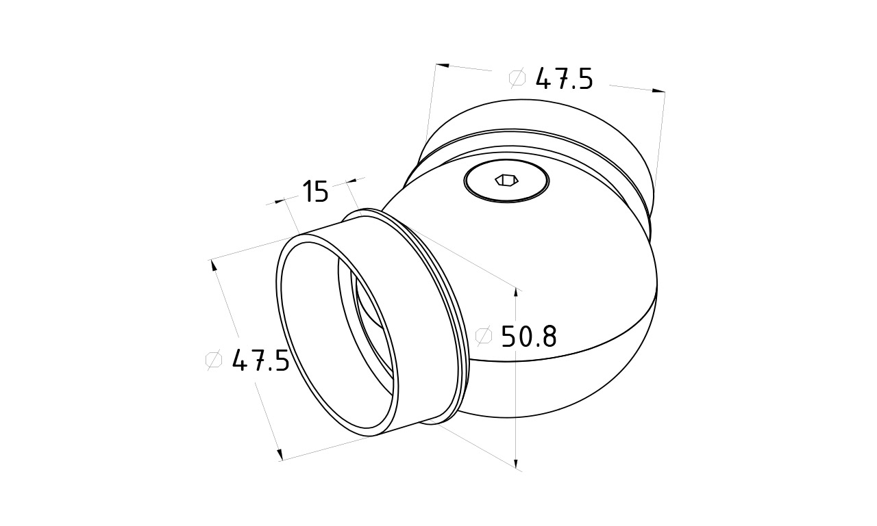 Изготовлен поворот в виде шара из полированной нержавейки с установочными кольцами.
