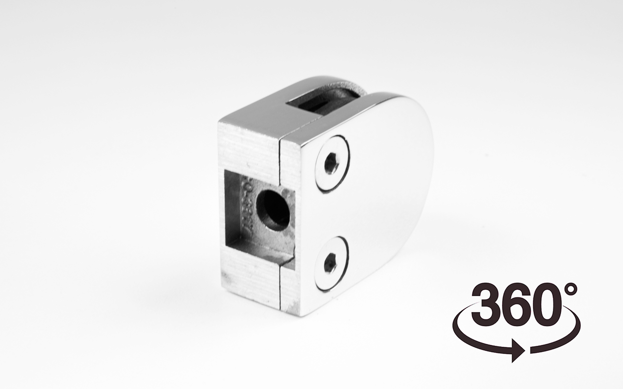 Стеклодержатель литой с вставками под стекло 8-10 мм, 4+4 мм, закругленный под стойку Ø38,1 мм (40х22х50), полированный, (AISI 304) k001-10 купить в Ростове-на-Дону
