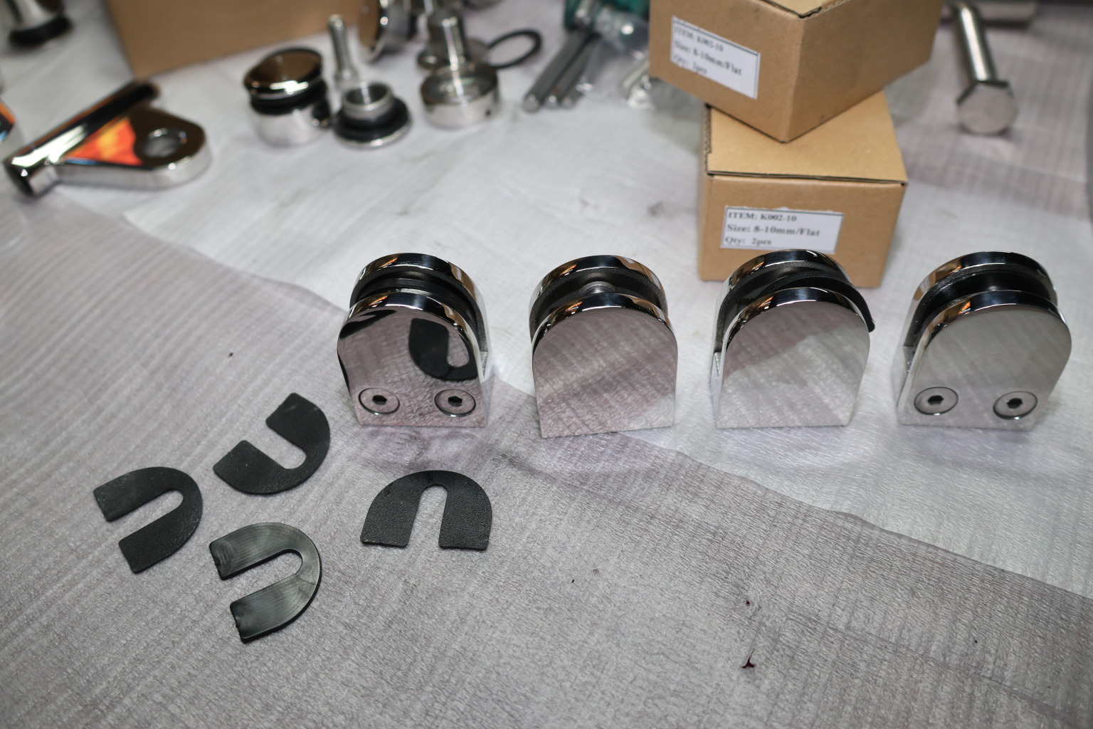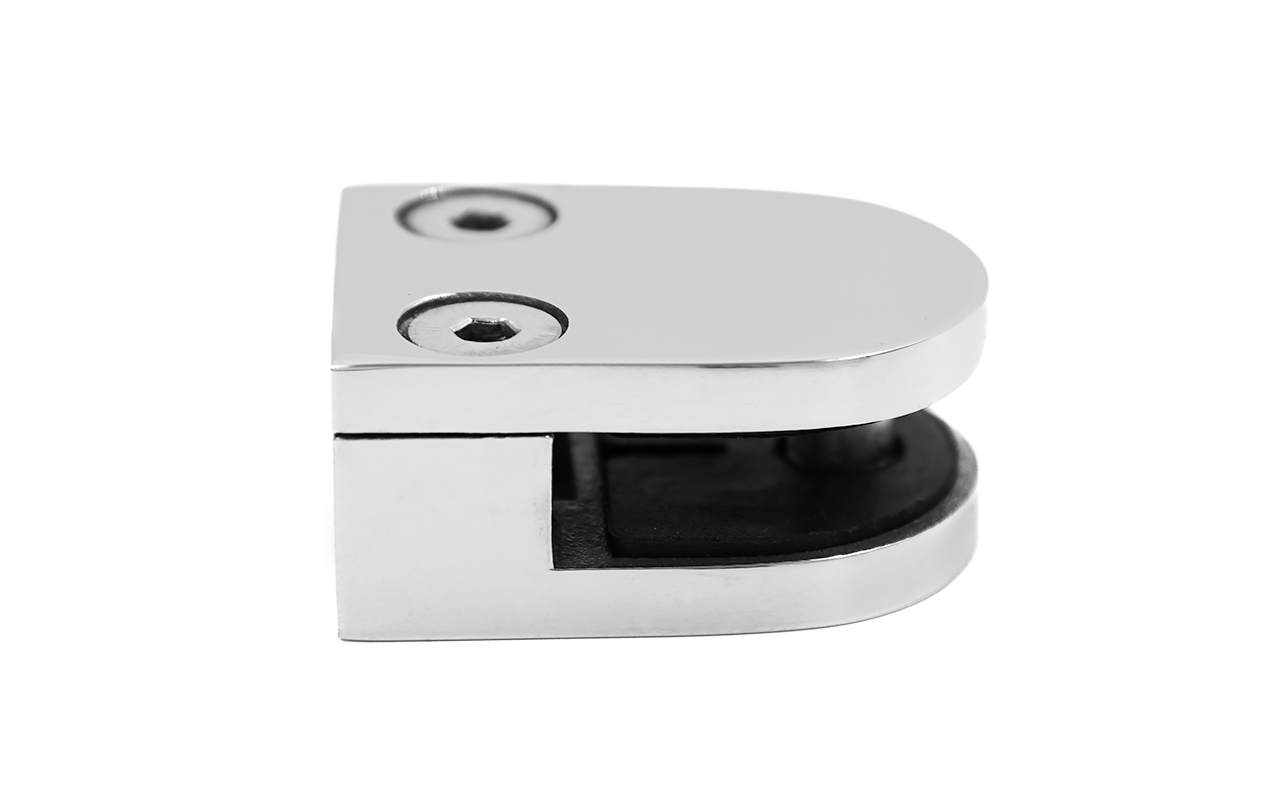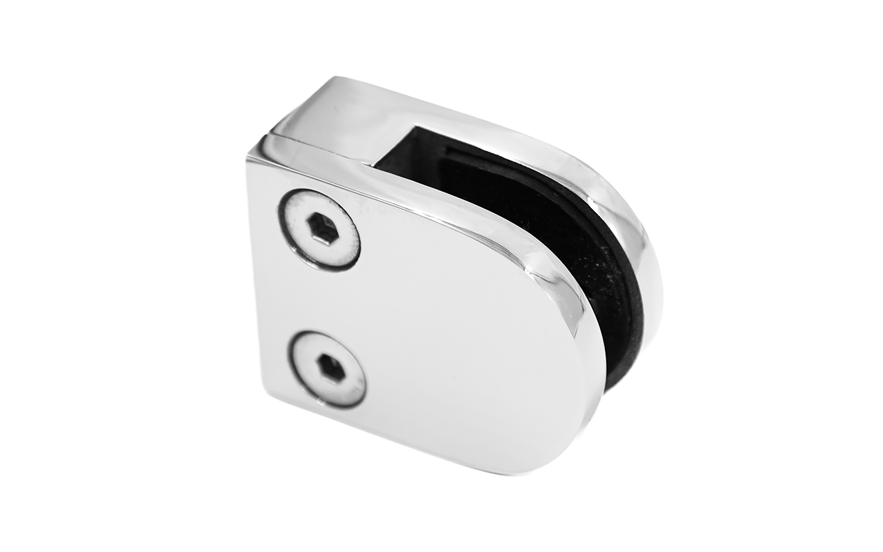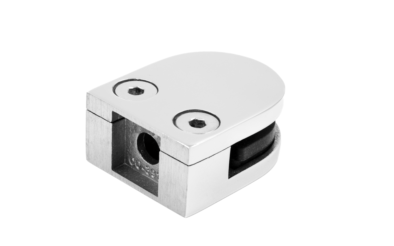 Стеклодержатель литой с вставками под стекло 8-10 мм, 4+4 мм, закругленный под стойку Ø38,1 мм (40х22х50), полированный, (AISI 304) k001-10 купить в Ростове-на-Дону
