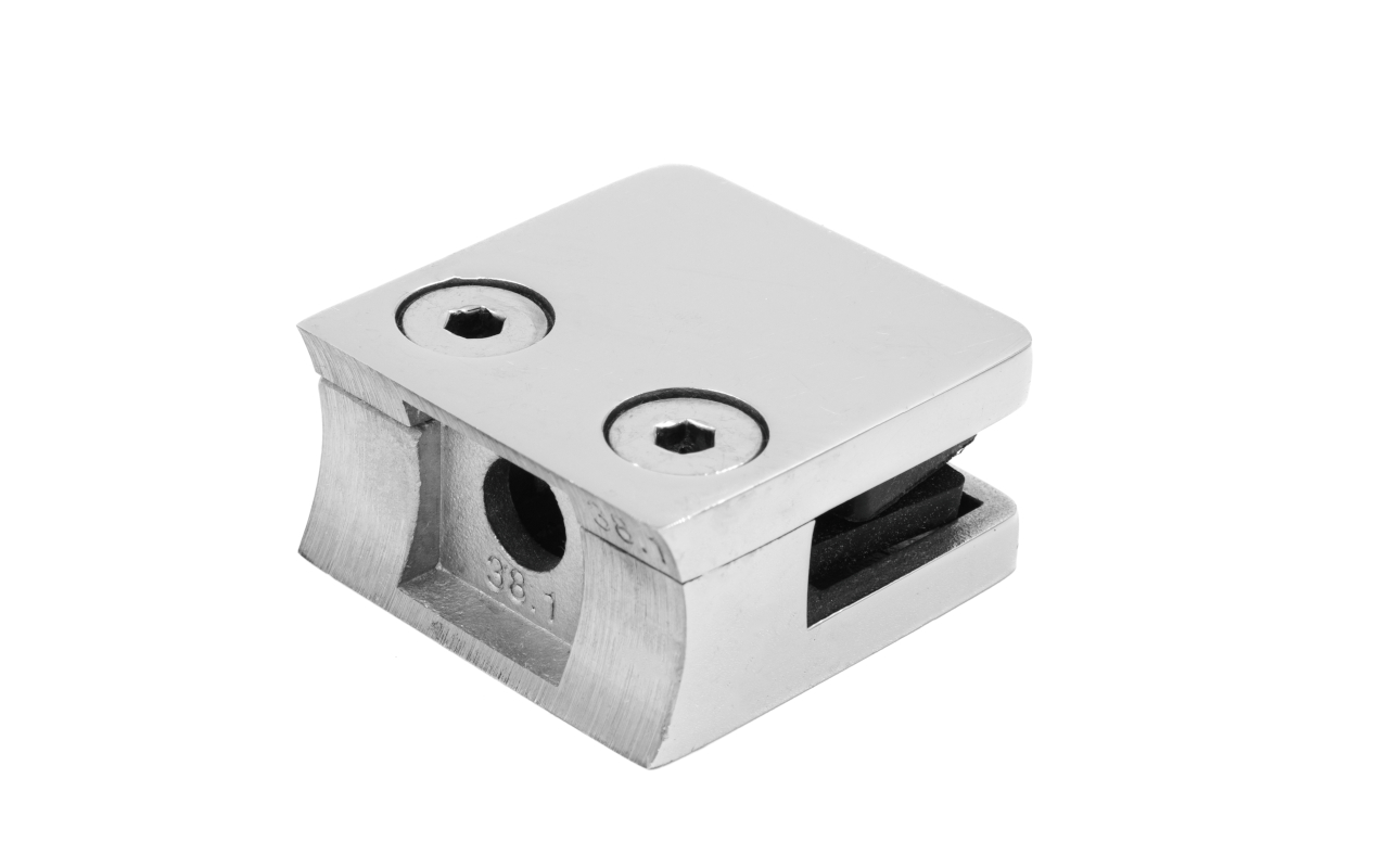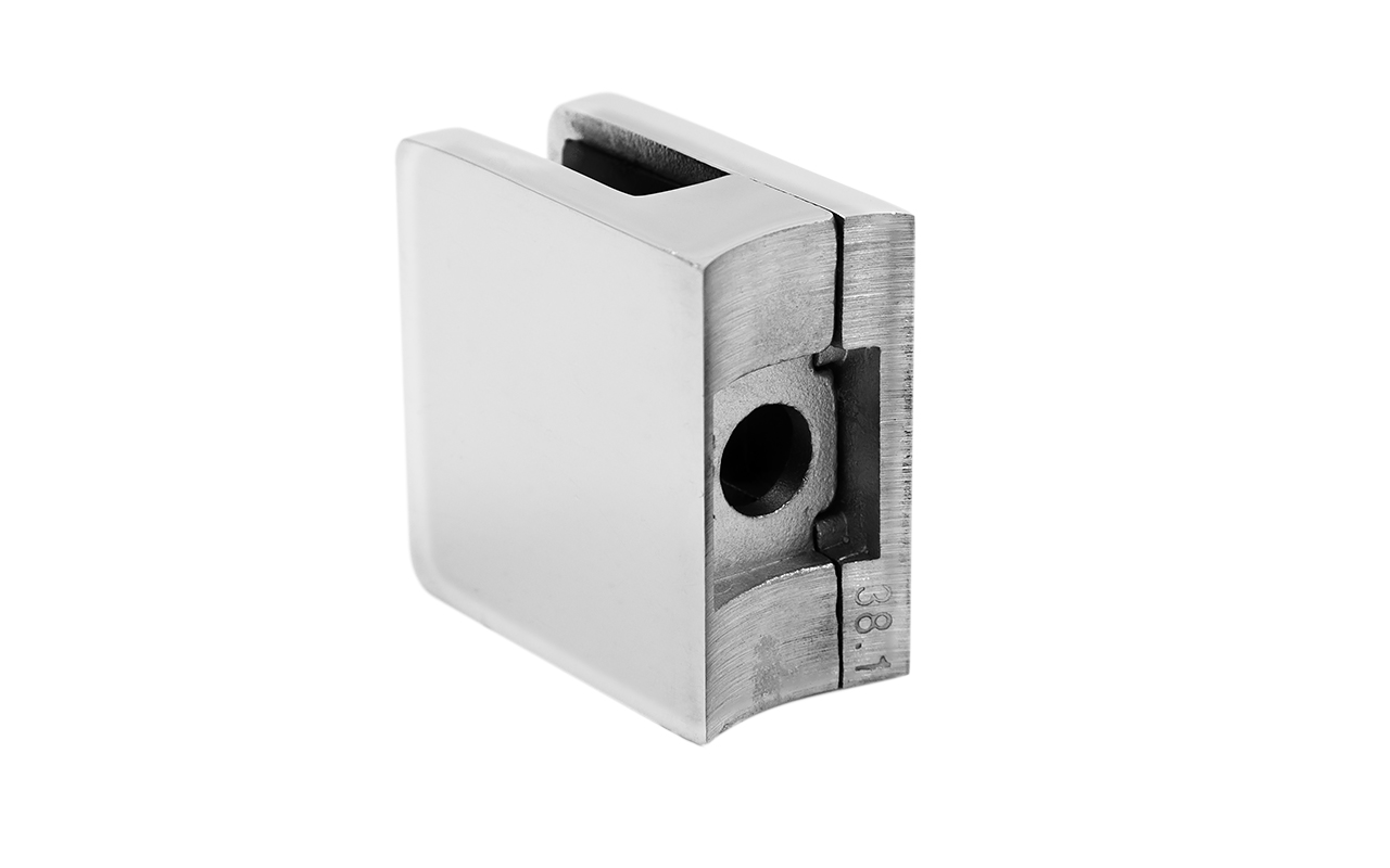 Стеклодержатель литой под стекло 8 мм (4+4 мм), под стойку Ø38.1 мм 40х22х49, полированный (AISI 304) k001-4