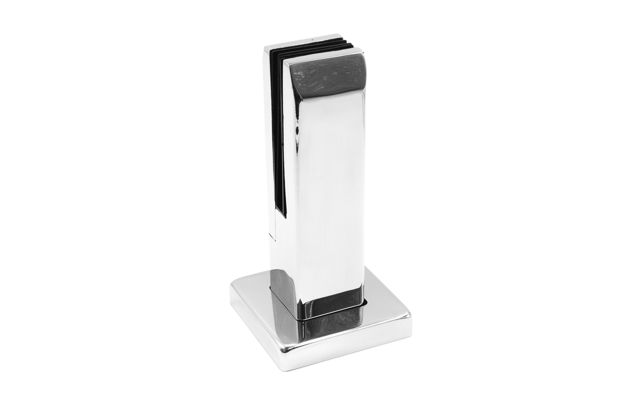 Стеклодержатель напольный 50х50х190 мм, литой, плоский, для стекла 10-12 мм, нержавеющая сталь AISI 304, полированная k275-2