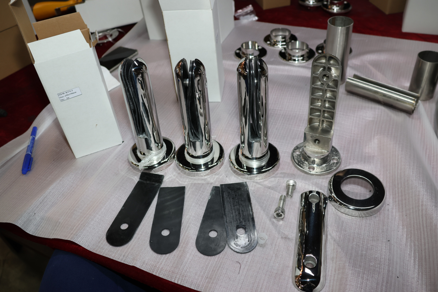 Стеклодержатель литой напольный, круглый Ø50х190 мм, полированный. Марка стали - AISI 304. В комплекте идут 4 уплотнителя: 2 пластиковых и два резиновых. Вам понадобиться для крепежа потайной винт под шестигранник k601-19-120