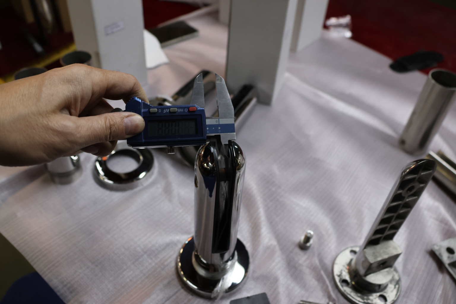 Стеклодержатель Ø50х10х18, шпилька М16х205 мм, для стекла 8-40 мм, AISI (201), с возможностью регулировки выноса до 65 мм, для торцевого крепления стекла, полированный, литой k277-3 купить в Ростове-на-Дону