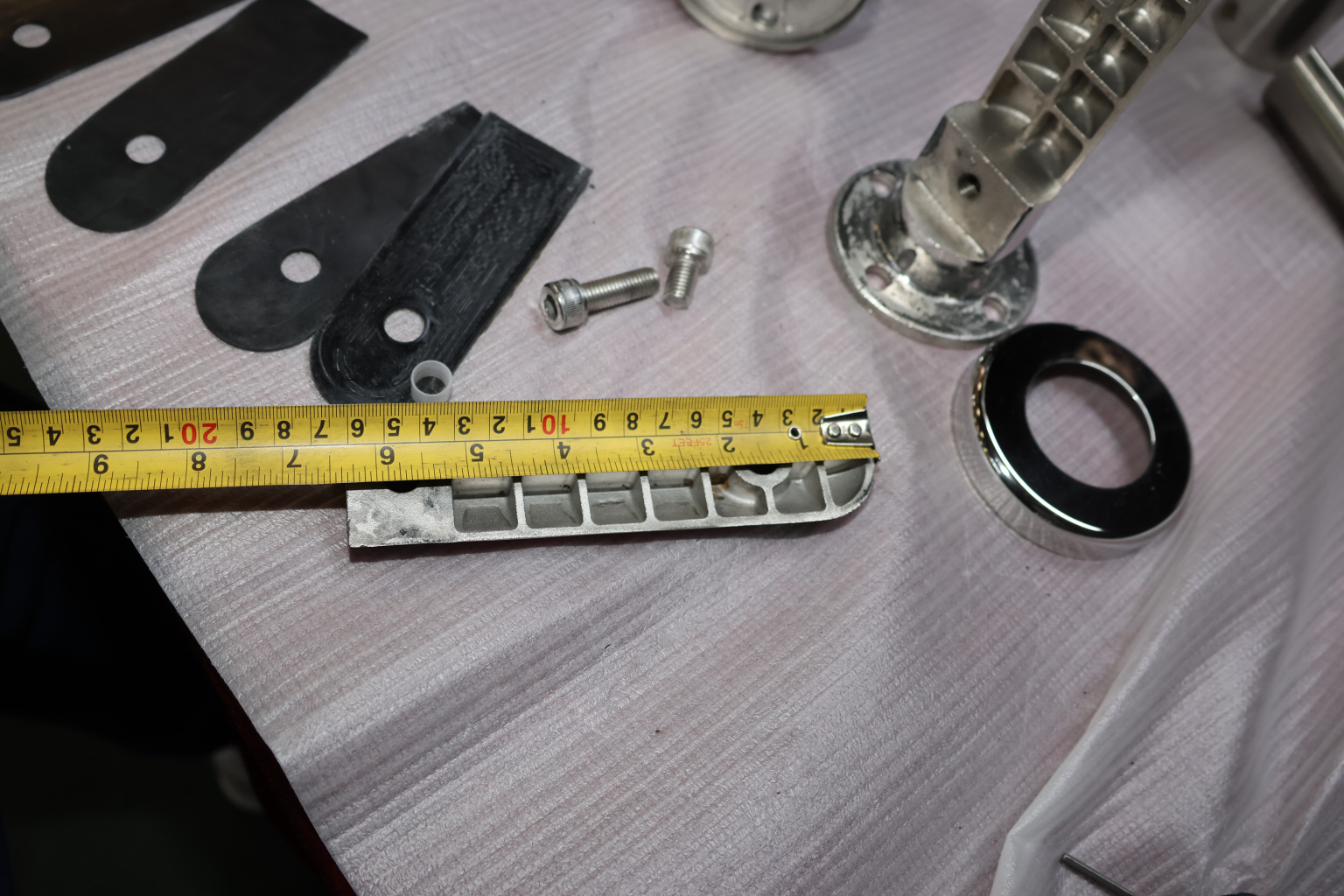 Для крепления требуется отверстие в стекле. Стойка идеально подходит для стекла 12 мм (6+6) с 2 уплотнителями. В зависимости от того, какое стекло нужно зажать, варьируется количество уплотнителей, каждый из которых имеет толщину 0.4 мм. Для стекла 10 мм (5+5) рекомендуется использовать дополнительные уплотнители из комплекта. Для закрепления стекла в стойке винт необходимо укоротить и установить вместо стандартного нижнего винта. При таких манипуляциях возможно появление щели в нижней части стеклодержателя, но на его несущую функцию это никак не повлияет.