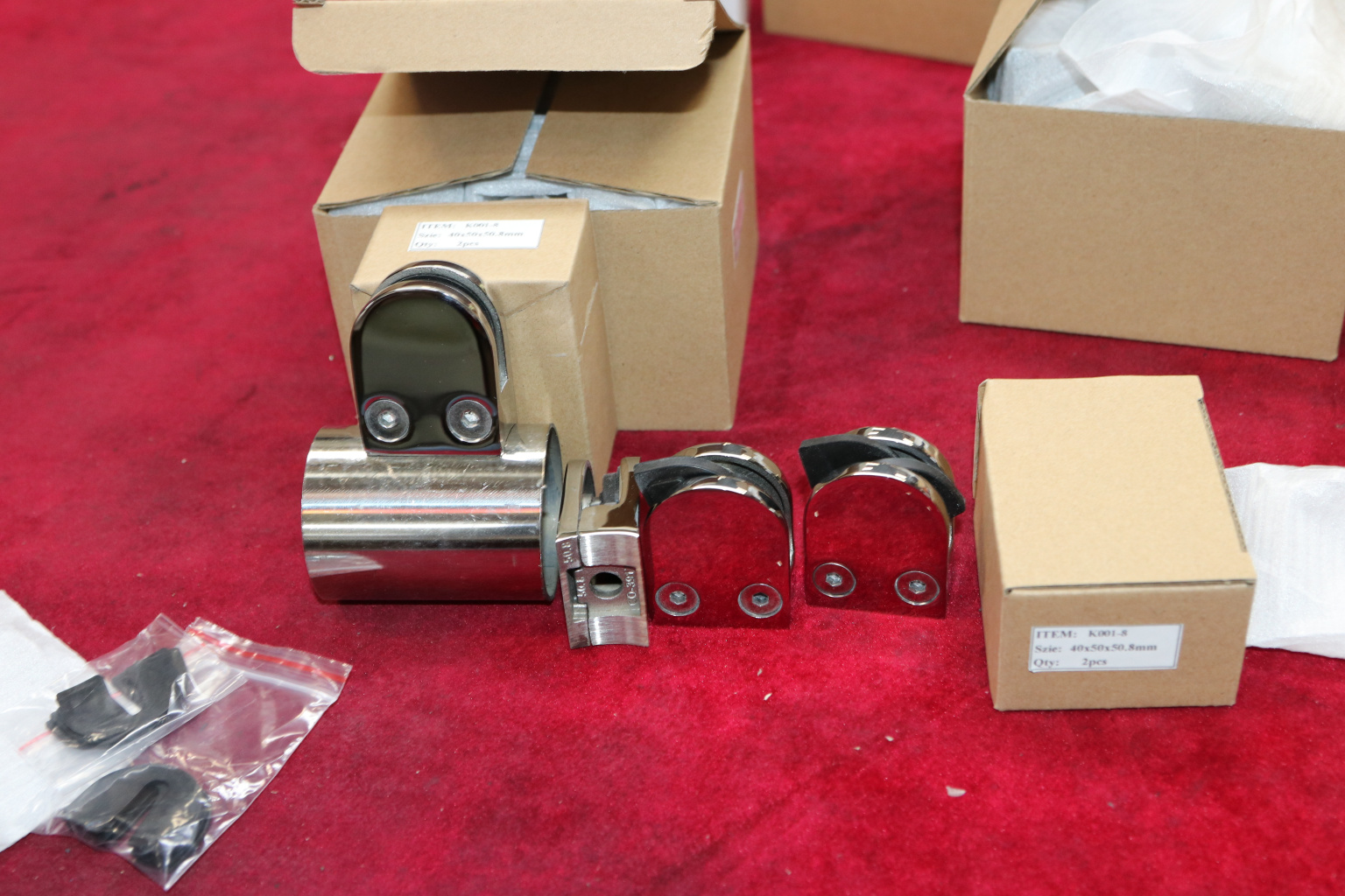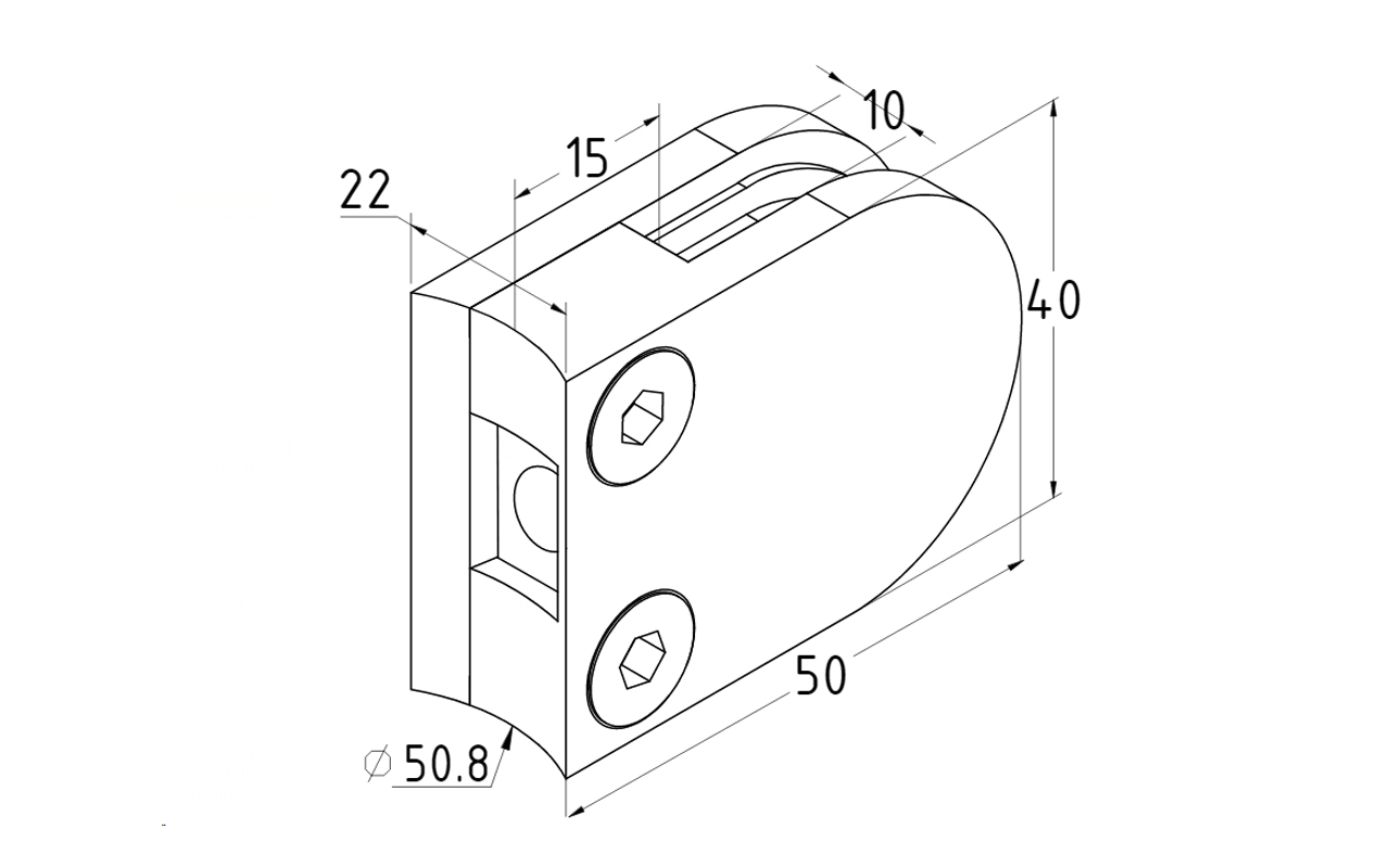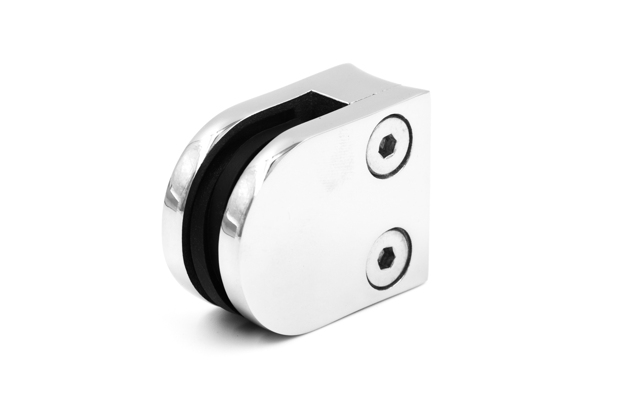 Стеклодержатель литой с вставками под стекло 8-10 мм, закругленный под Ø50.8 мм, 40х22х50, полированный, (AISI 304) k001-8