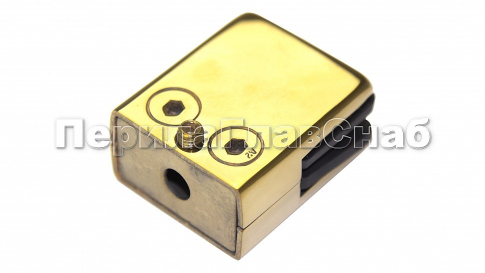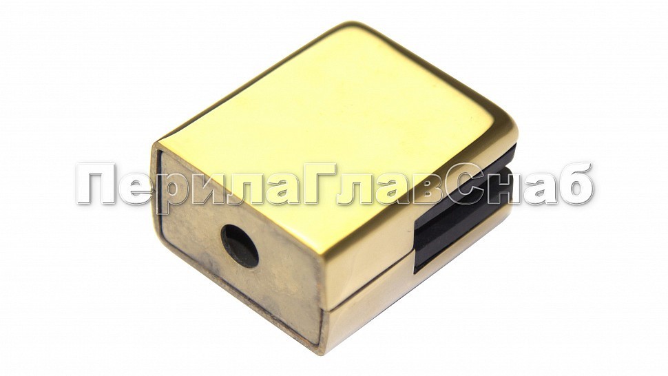 Стеклодержатель штампованный квадратный на плоскость для стекла 8 мм (4+4 мм). Деталь полированная, под золото. Марка стали - AISI 304