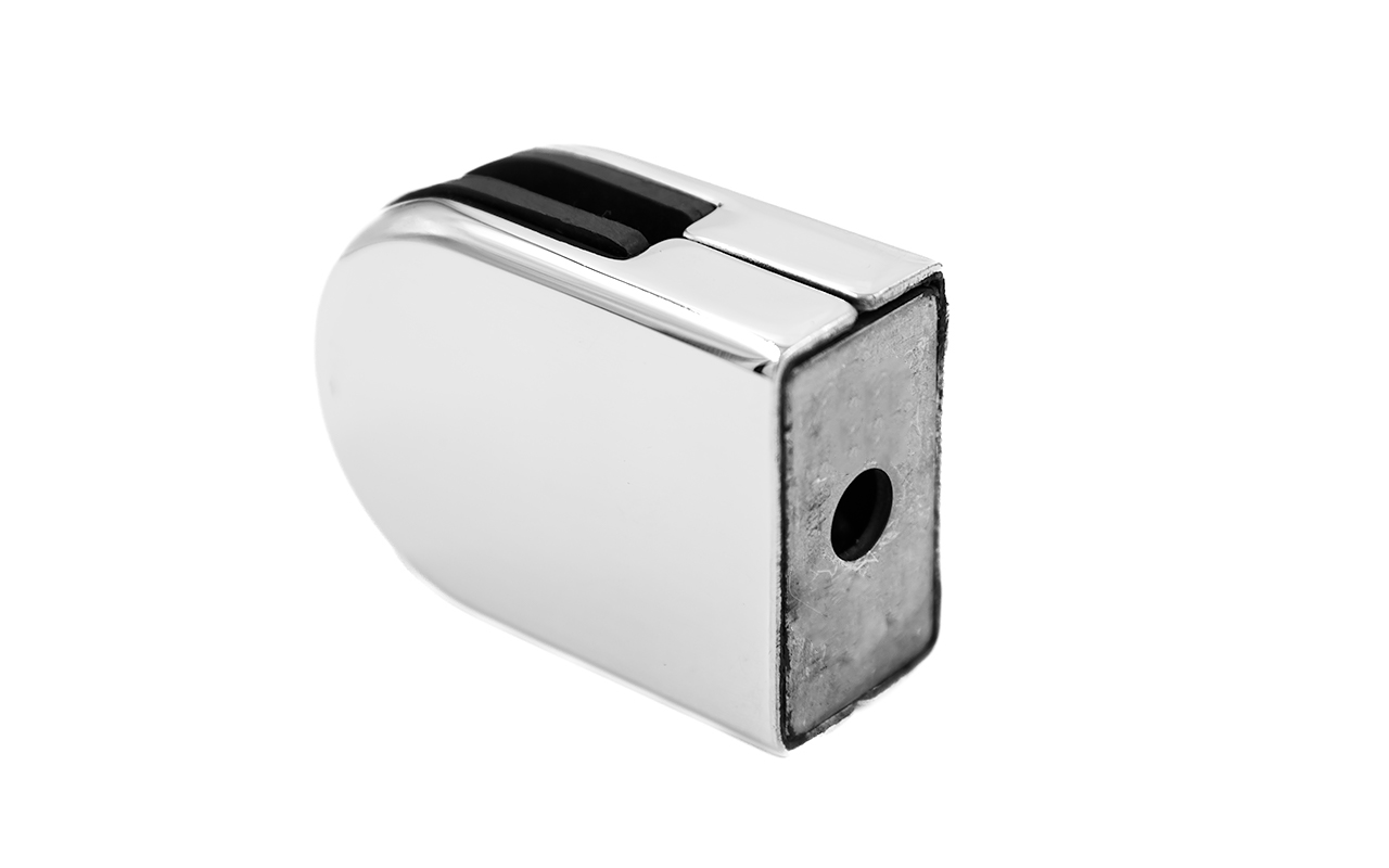 Стеклодержатель штампованный под стекло 8 мм (4+4 мм), под стойку Ø38.1 мм 40х24х55, полированный. Марка стали - AISI 304