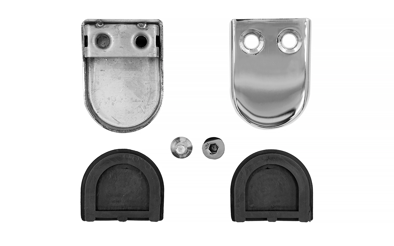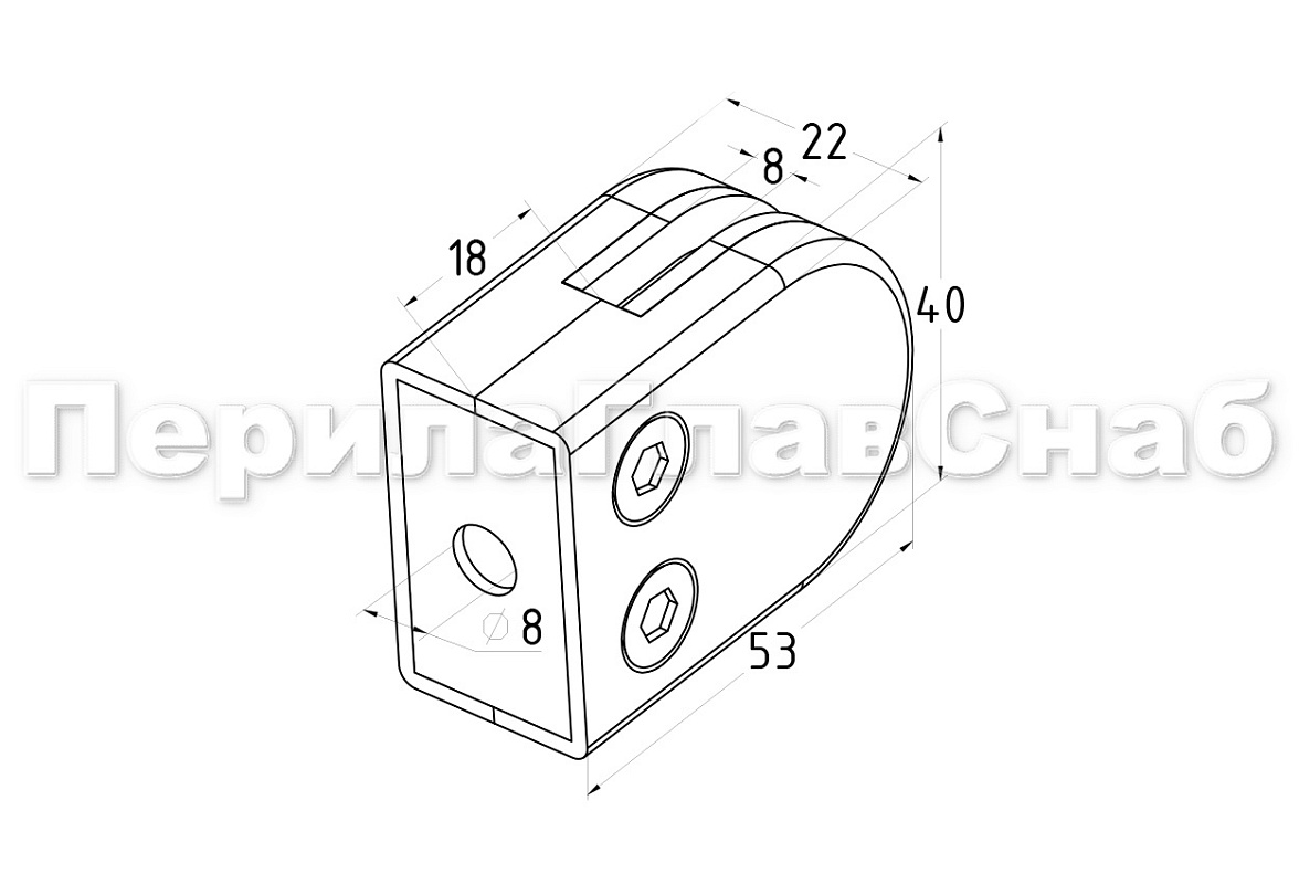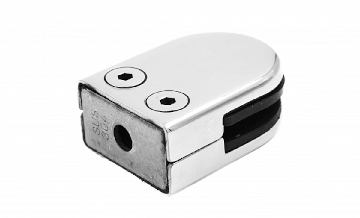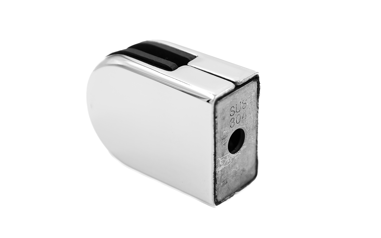 k039 стеклодержатель штампованный под стекло 8 мм? на плоскость 40х22х53 полированный. Марка стали AISI 304