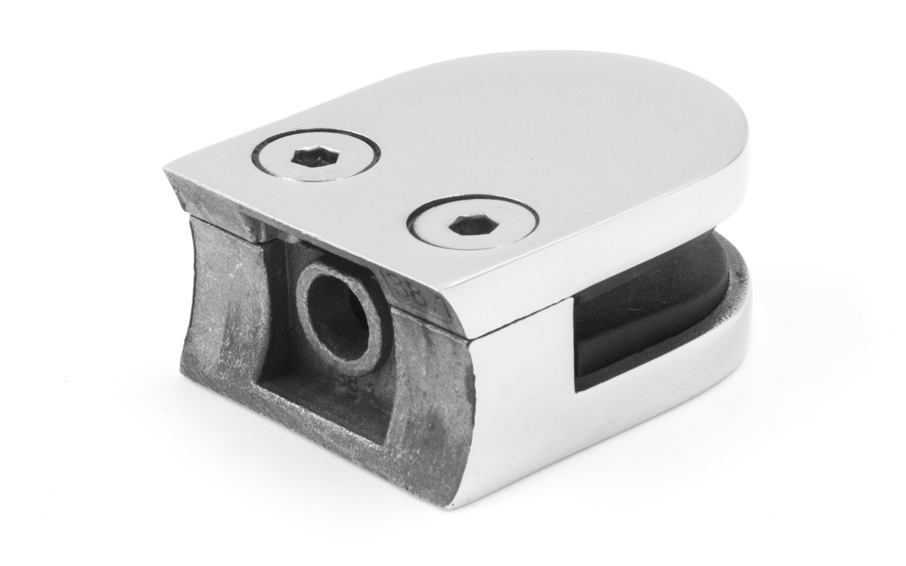Стеклодержатель литой под стекло 8 мм (4+4 мм), под стойку Ø38.1 мм 40х22х49, полированный (AISI 304) k001-4