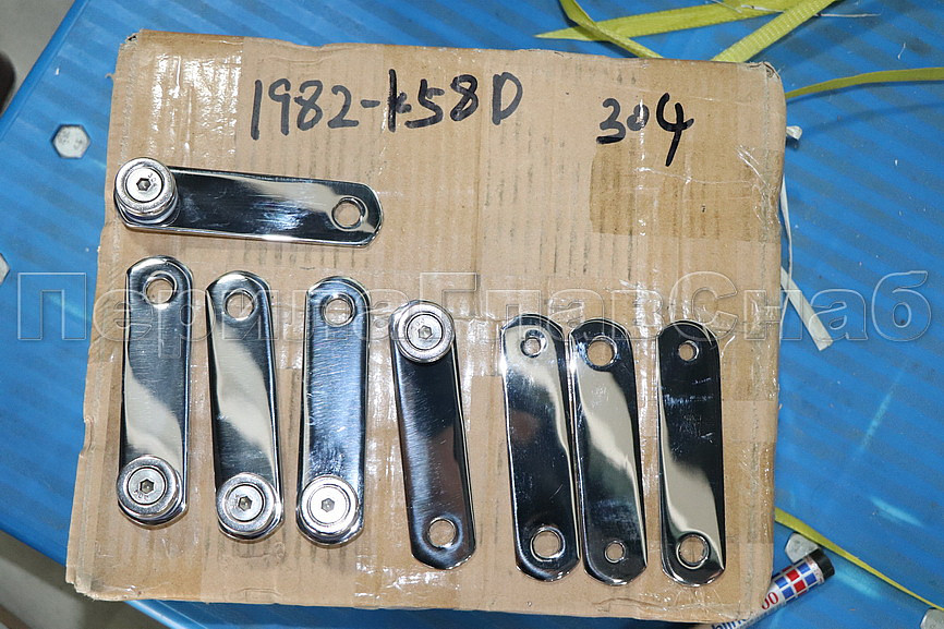 Стеклодержатель пластинчатый 2хМ8 (половинка), по центрам 85х5 мм, полированный, шайбы 5 мм штамп., под стекло 6-12 мм, (AISI 304) k023-1/2