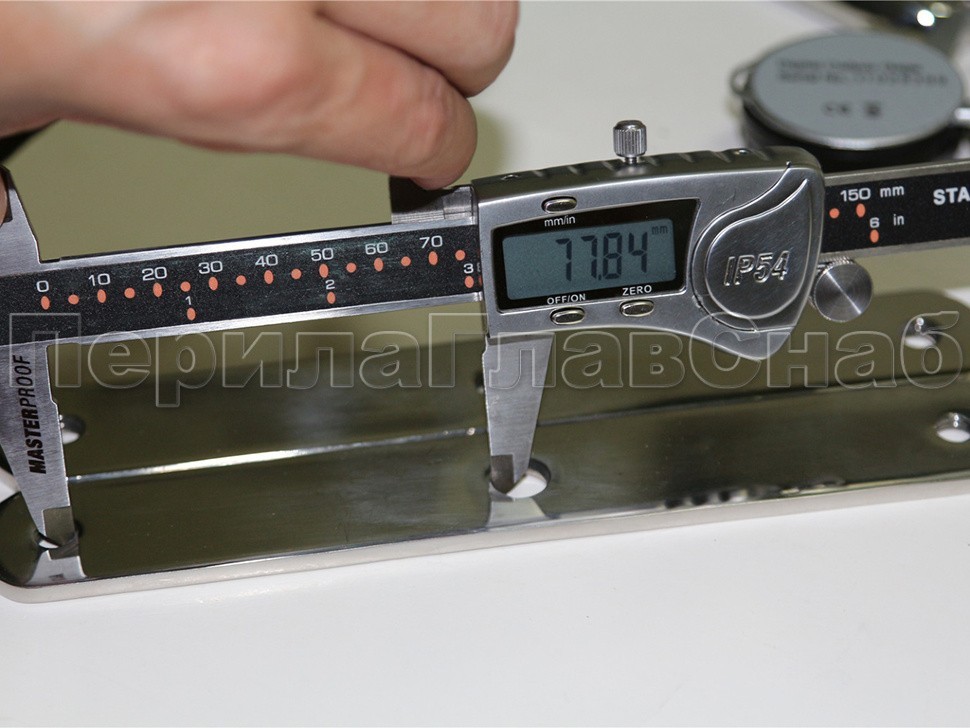 Стеклодержатель пластинчатый 3хМ8, по центрам 170х5 мм, полированный, шайбы 5 мм штамп., под стекло 6-12 мм, AISI 316 k023-8 купить в Ростове-на-Дону