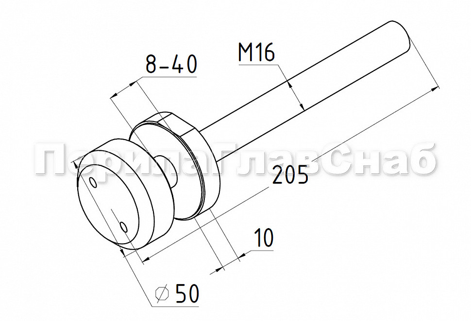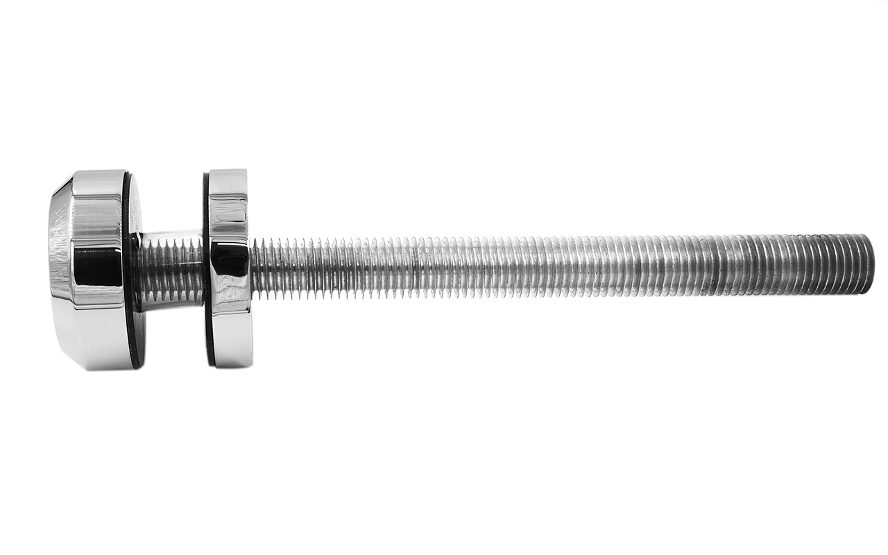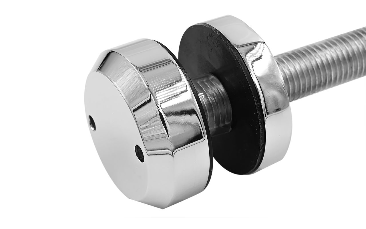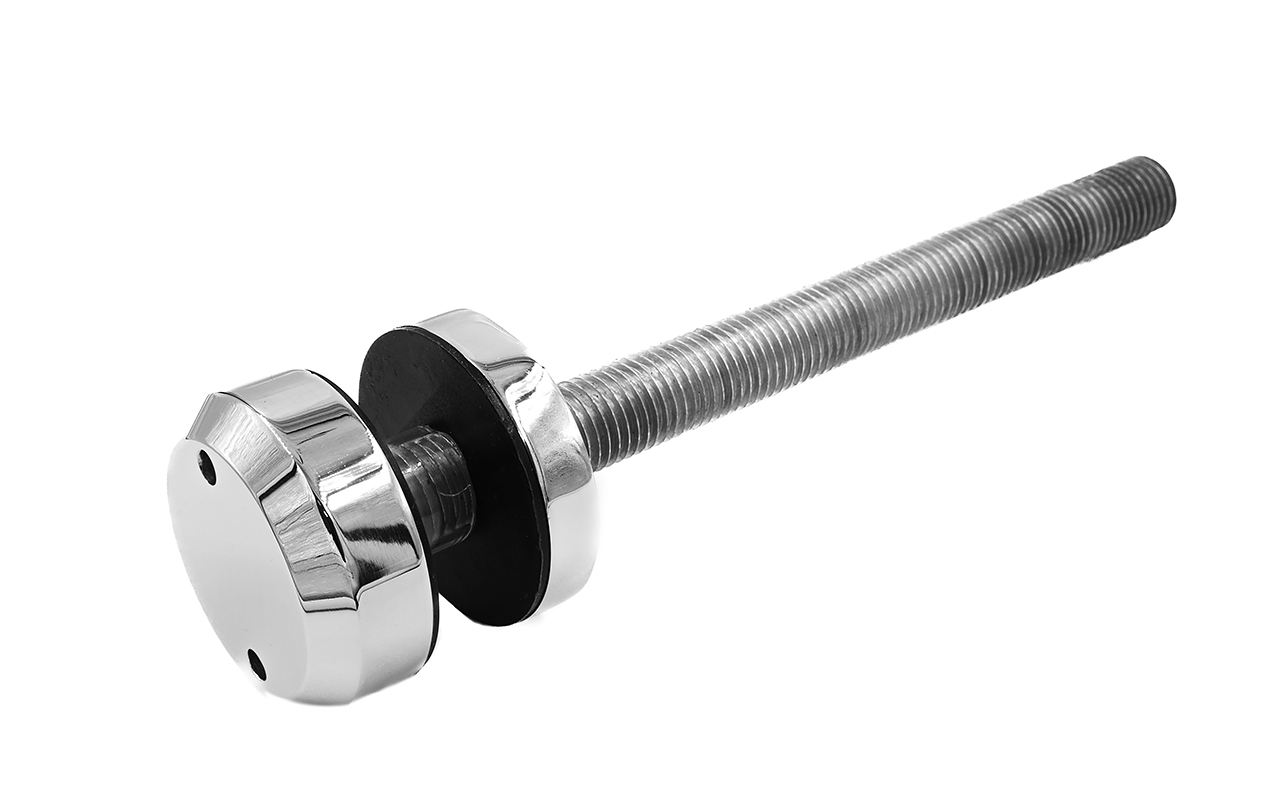 Стеклодержатель Ø50х10х18, шпилька М16х205 мм, для стекла 8-40 мм, с возможностью регулировки выноса до 65 мм, для торцевого крепления стекла, полированный, литой, точечный.