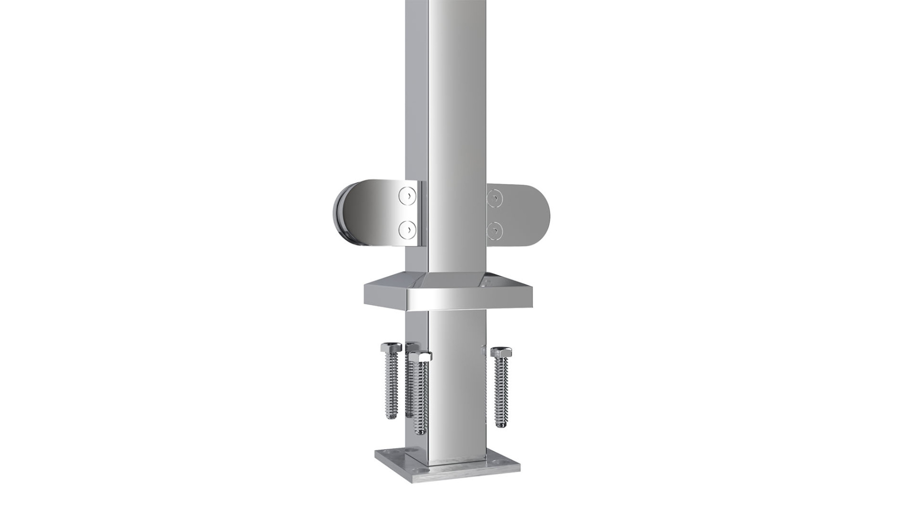 Cтойка квадратная 40х40: 4 литых стеклодержателя, полированная, высота 950 мм (aisi 304)