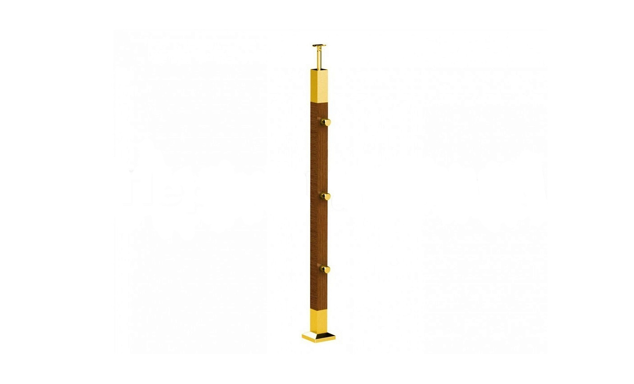Готовая стойка 40х40х950 мм, деревянная, со вставками из нержавеющей стали 2х100 мм с 2 пластинчатыми стеклодержателями, под золото k740-2-G купить в Ростове-на-Дону