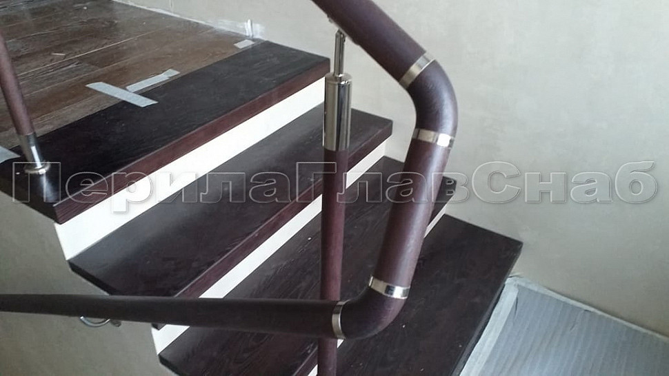 Готовая стойка Ø38,1х950мм деревянная, дубовая, со вставками из нержавеющей стали 2х100мм с 2 стеклодержателями.