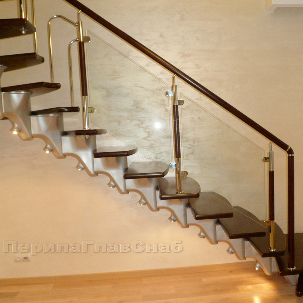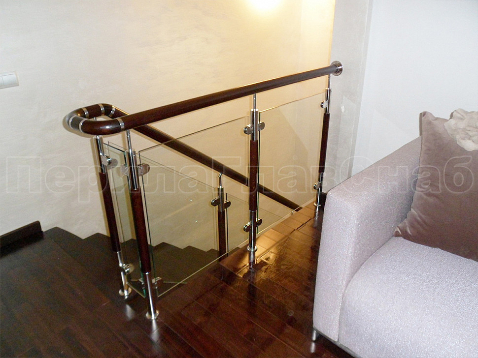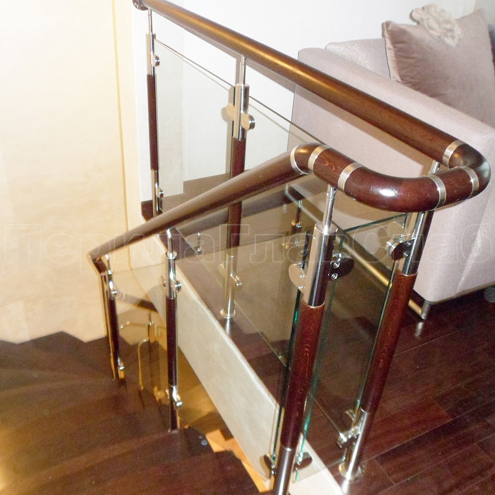 Данная стойка используются как конечная балясина слева, посередине ограждения используют балясину , а в конце ограждения справа . При установке данных стоек используется закаленное стекло толщиной 8мм или триплекс 4+4. Балясина исполнена в классическом стиле на основе металлических стоек и усовершенствована деревянной составляющей, благодаря которой эта стойка хорошо вписывается в дизайн современных домов. Не малую роль в этом ограждении занимает стекло, ведь стекло можно сделать не просто прозрачным, а матовым, бронзовым, с рисунком и т.п. Ваше ограждение будет не только исполнять функцию безопасности, но и станет частью дизайна в доме.