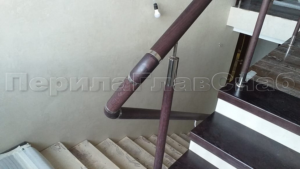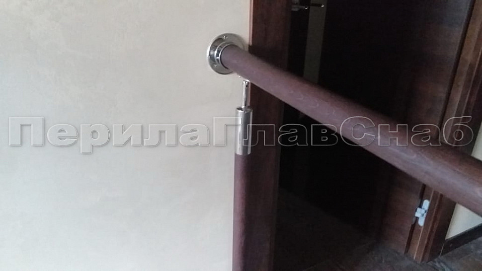 Готовая стойка Ø38,1х950 мм деревянная, со вставками из нержавеющей стали 2х100 мм с 2 стеклодержателями k741-2-L