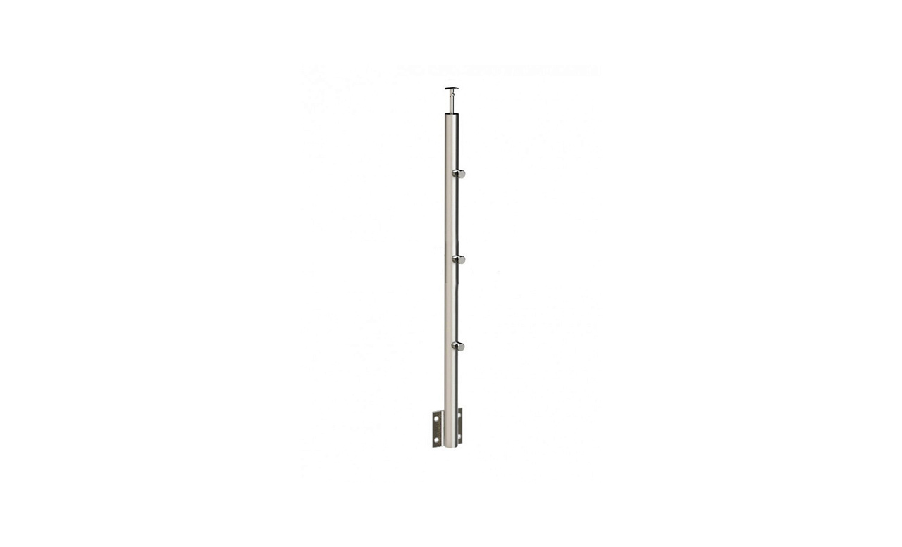 Стойка круглая Ø38.1: 3 ригеледержателя, полированная, боковой крепеж, высота 1200 мм (AISI 304) k753