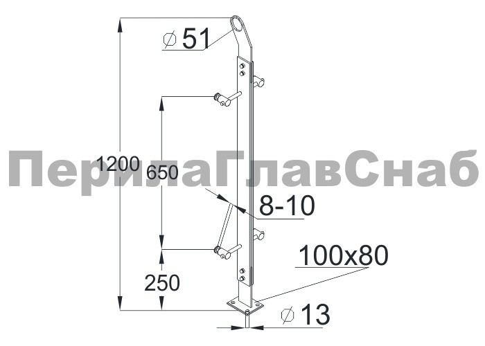 Готовая стойка Ø38,1х950 мм деревянная, со вставками из нержавеющей стали 2х100 мм с 2 стеклодержателями k741-2-L купить в Ростове-на-Дону