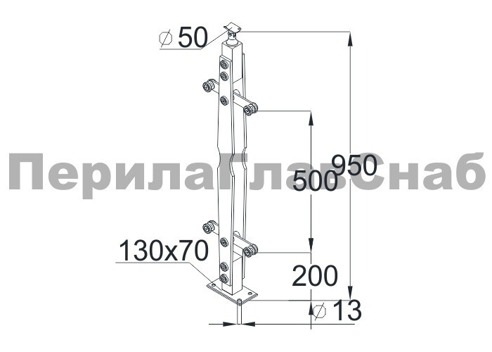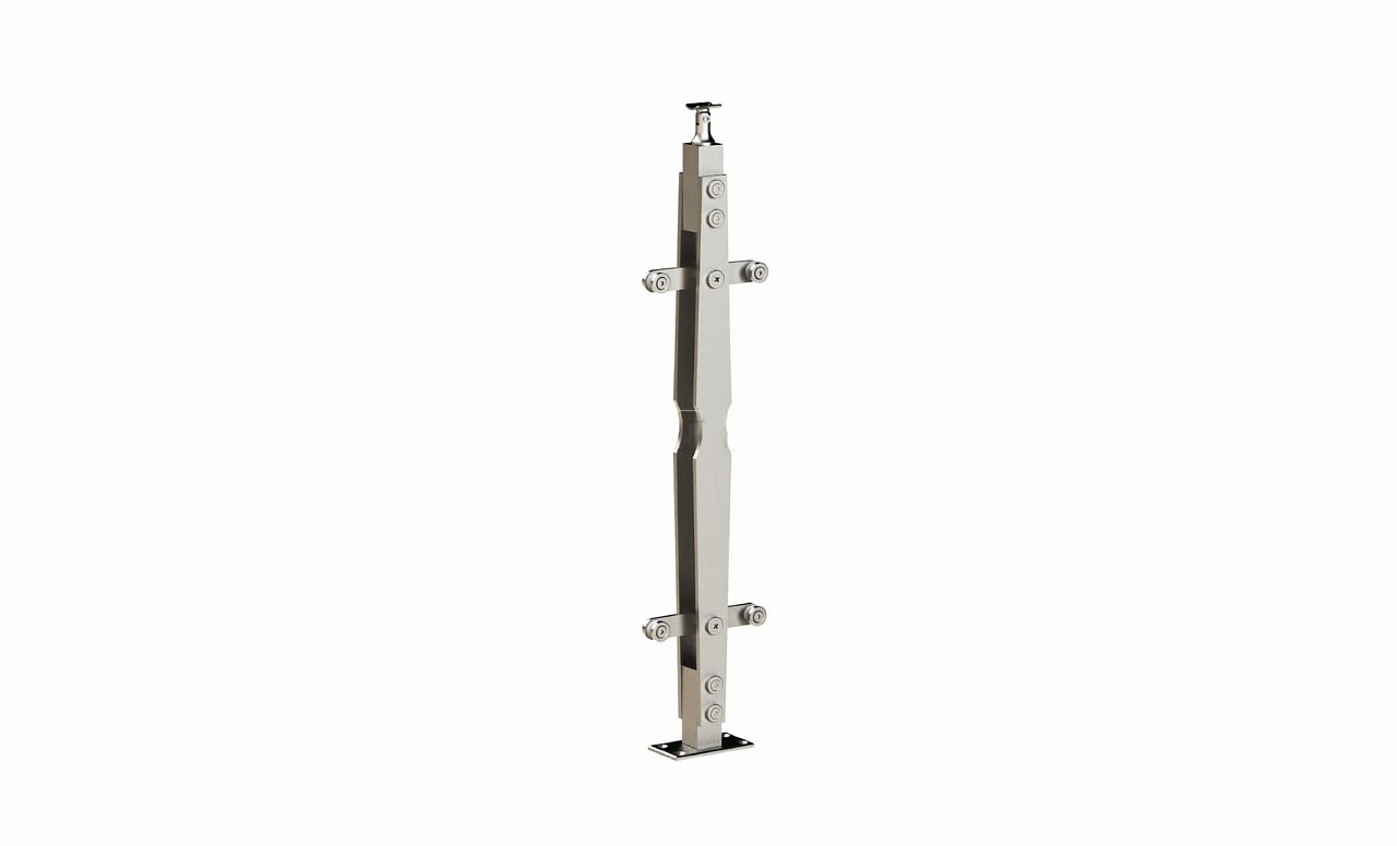 Стойка квадратная 40х40: 4 литых стеклодержателя, полированная, высота 950 мм (AISI 304) k746 купить в Ростове-на-Дону