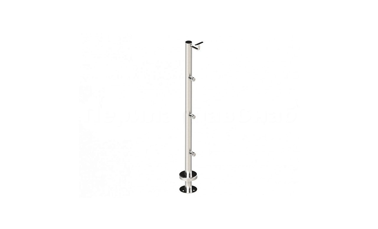 Cтойка круглая Ø38.1: 3 ригеледержателя, под выносной поручень, полированная, высота 950мм (aisi 304)