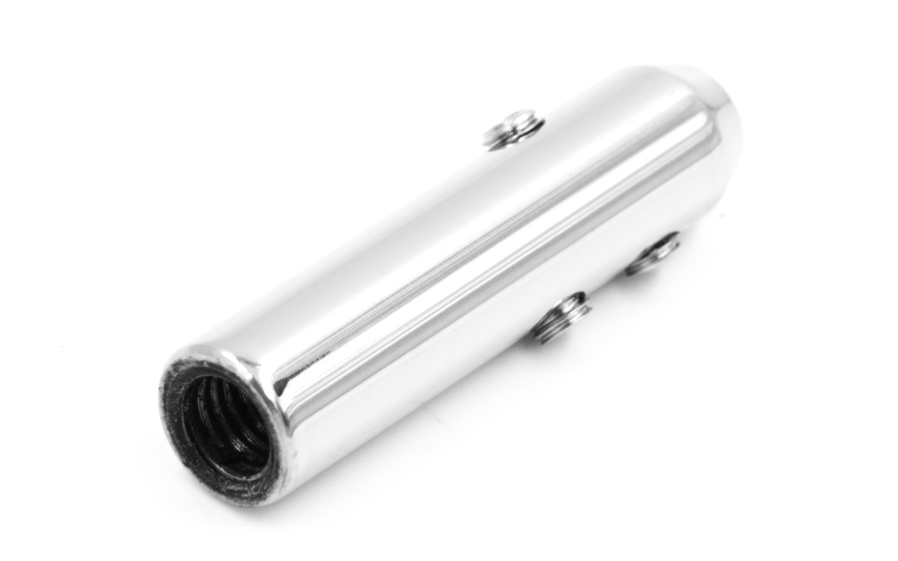 Нержавеющий держатель + натяжитель троса, литой, 50х12мм, для троса Ø5 мм, полированный (AISI 304). Используется для крепления троса к стойкам различного диаметра, а также к плоской поверхности.