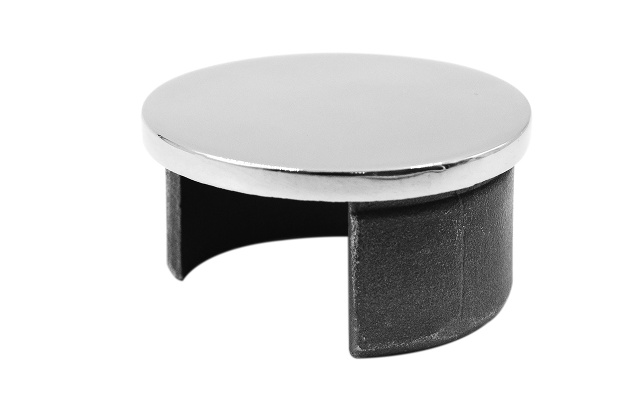 Применяется для аккуратного завершения и красивого закрывания торца трубы O48.3 мм поручня лестничных перил на объектах с несущим стеклом.