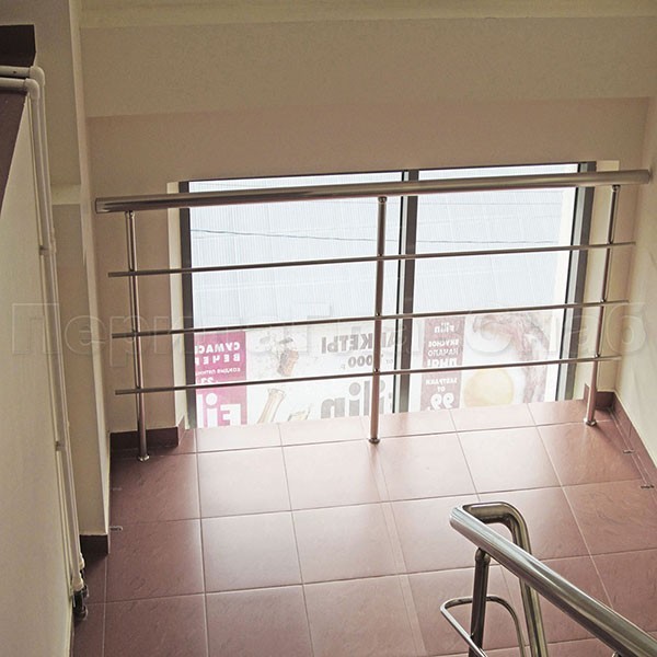 Четыре ригеля на сварке, квадратный поручень и круглые стойки