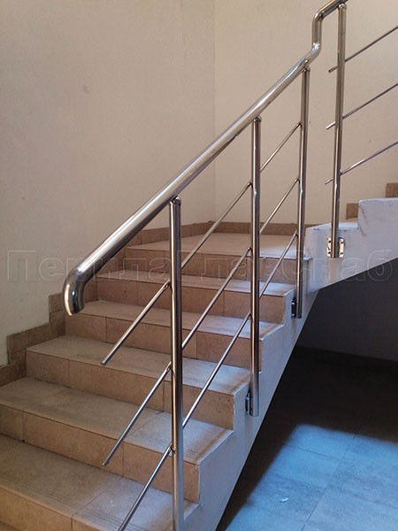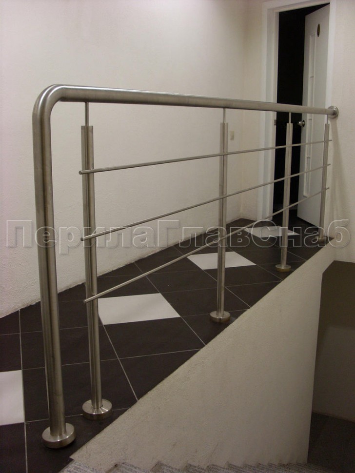 Четыре ригеля на сварке, круглый поручень и квадратные стойки