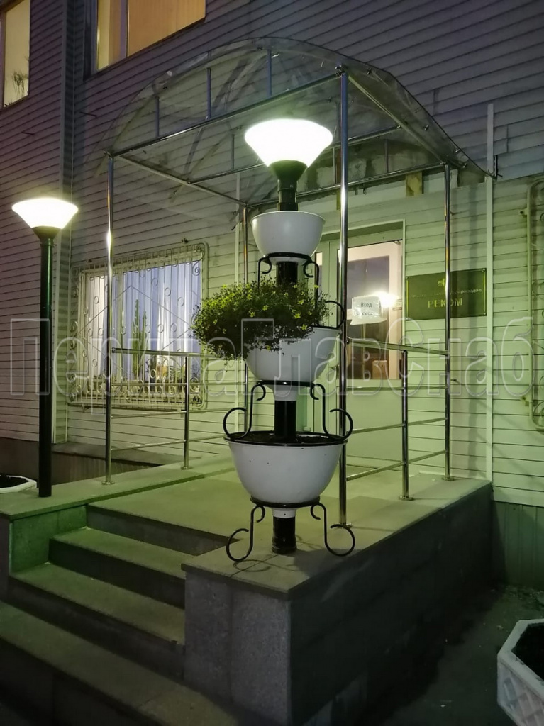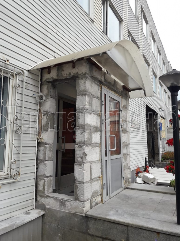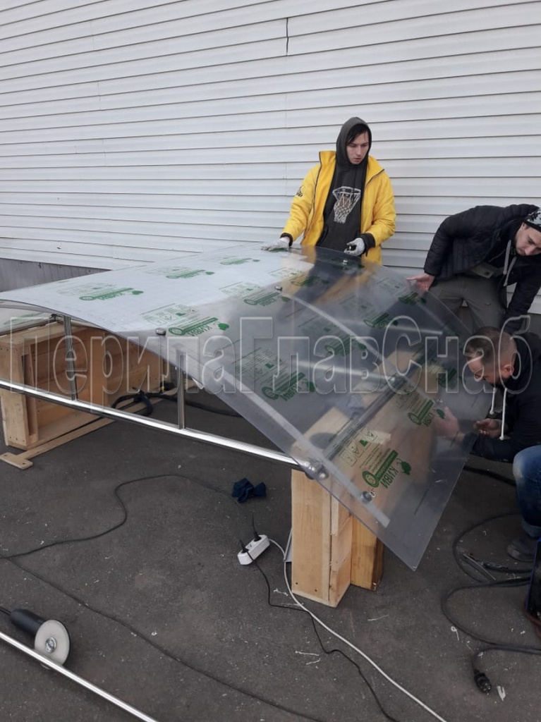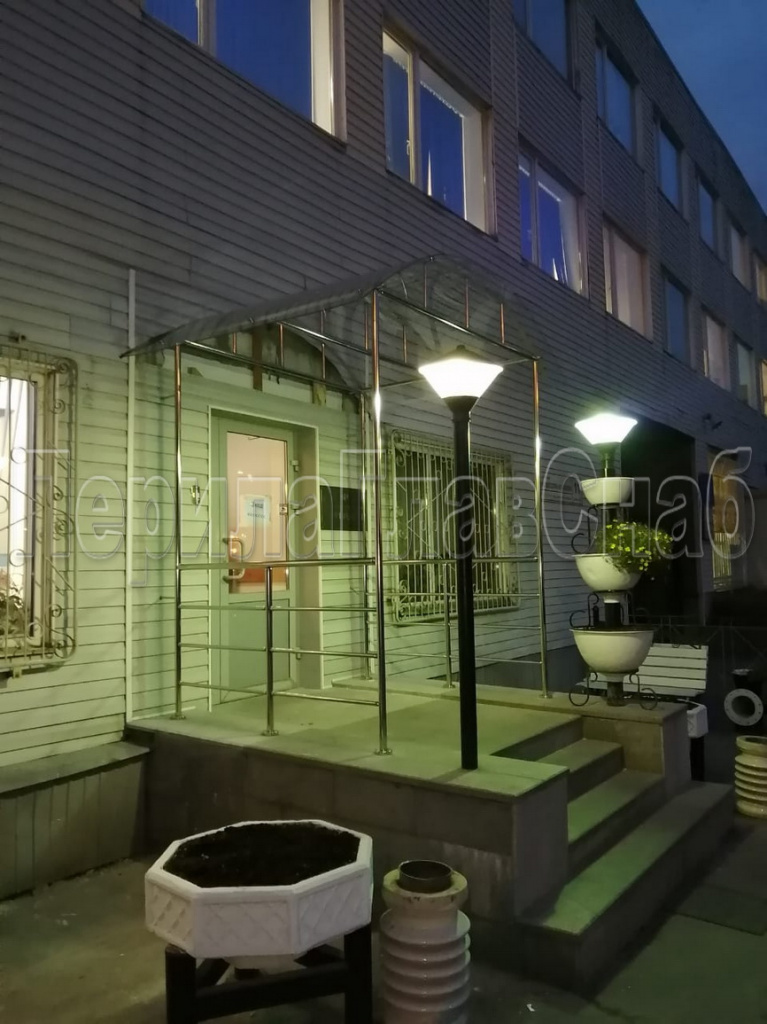 Конструктив: Козырёк  на  каркасе из  нержавеющей  стали  AISI 304 с  дополнительными  поручнями  на крыльце, навес  выполнен из    монолитного  поликарбоната 8.0 мм.