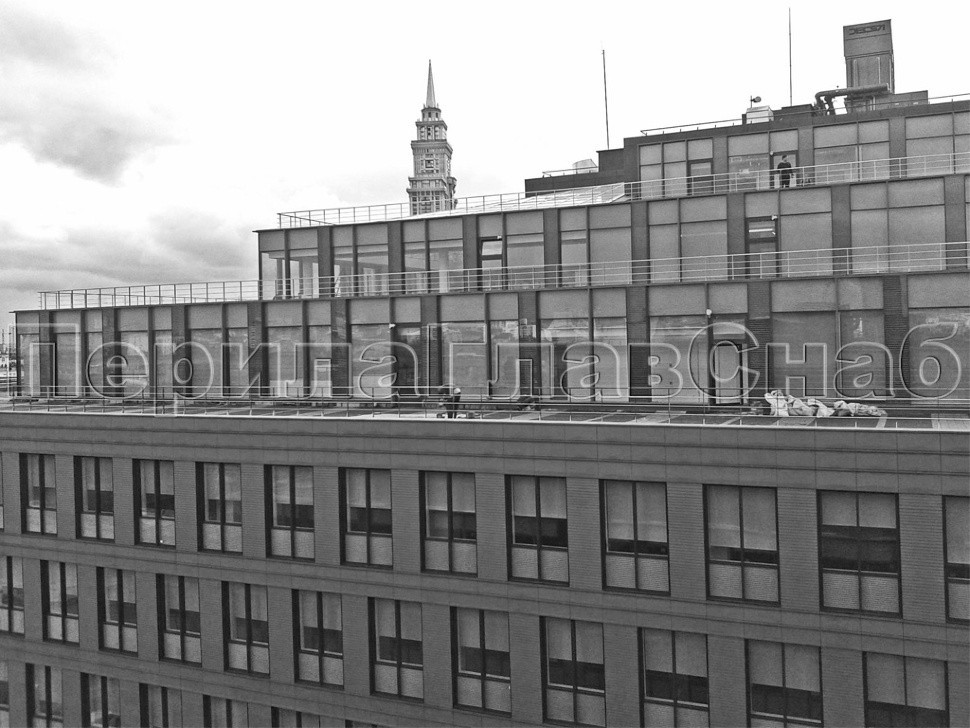 Ограждения парапетов монтировались на нескольких уровнях бизнес-центра. Там, где крыша приспособлена для нахождения сотрудников офисов, установлена полированная конструкция. Стойки смонтированы боковым креплением и соединены между собой тремя ригелями. А в качестве поручней использована профильная труба из нержавеющей стали.