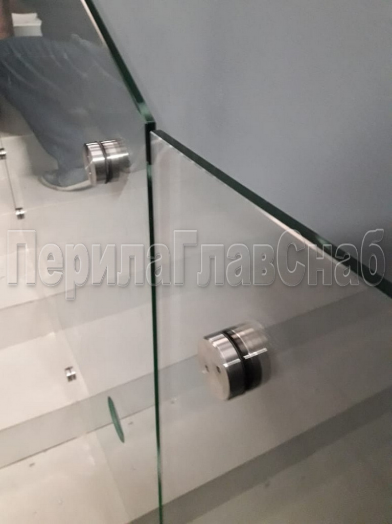 Конструктив: профильная труба 40х40 мм с пазом и встроенной ЛЭД подсветкой, пристенные держатели, стекло