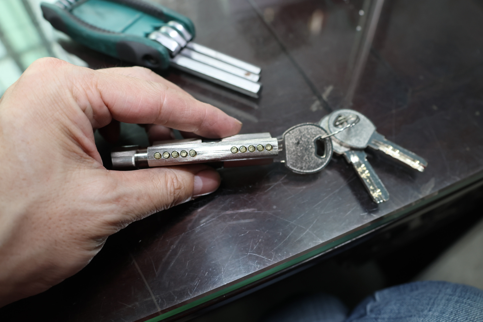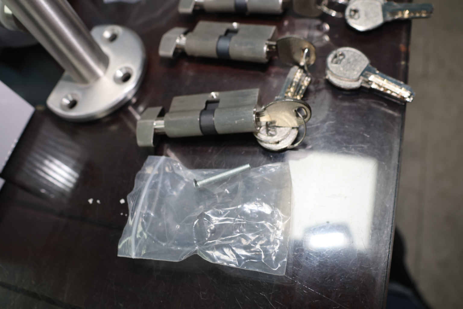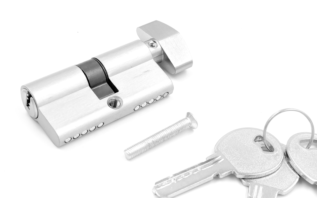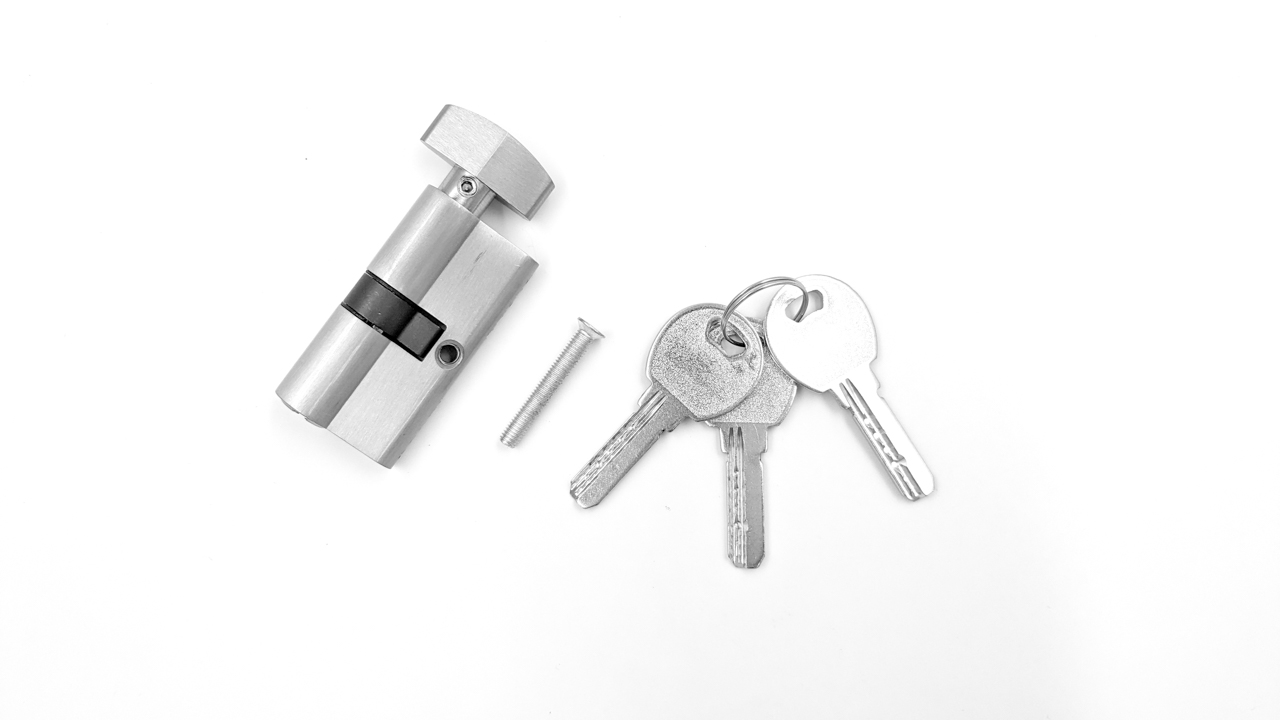 вставить личинку в отверстие. После этого нужно совместить крепежное отверстие на личинке с отверстием в корпусе замка. На этом этапе необходимо вставив шуруп «поймать» отверстие личинки и вкрутить шуруп до конца, не забыв после этого проверить работоспособность запирающего устройства. И собрать замок обратно
