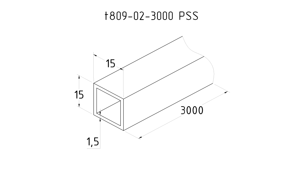 Штанга 15х15х1,5мм полированная, длина 3000мм t809-02-3000 PSS