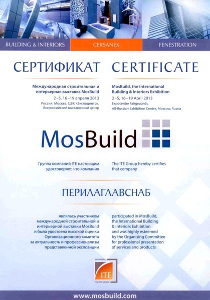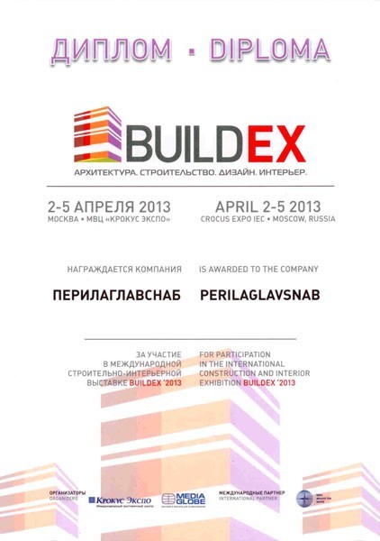 Группа компаний «ПерилаГлавСнаб» традиционно принимала самое активное участие в международной Московской Строительной Неделе, ознаменованной выставками MOSBUILD и BUILDEX, где была удостоена высокой оценки Организационного комитета за актуальность и профессионализм представленной экспозиции.