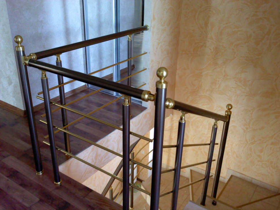 Записаться на встречу Лестничное ограждение с тремя ригелями и поручнем из латуни