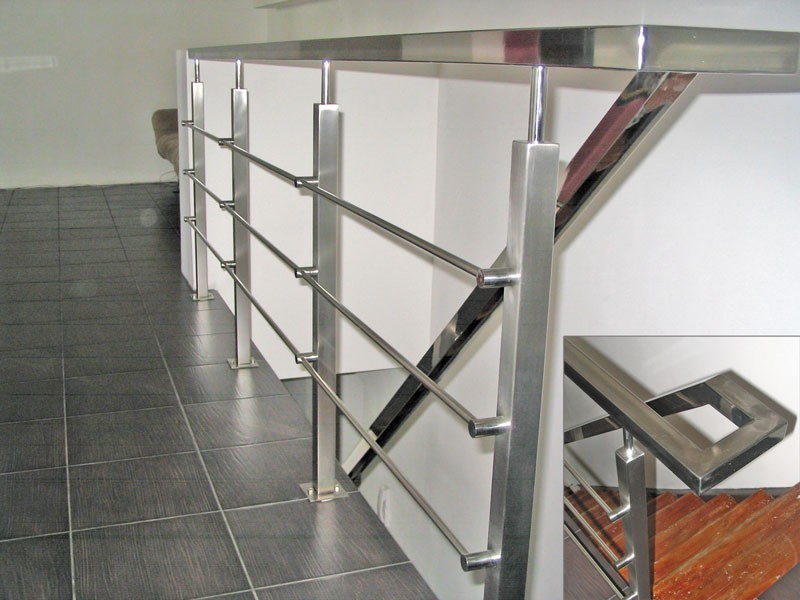 Записаться на встречу Два ригеля на держателях, квадратный поручень и круглые стойки